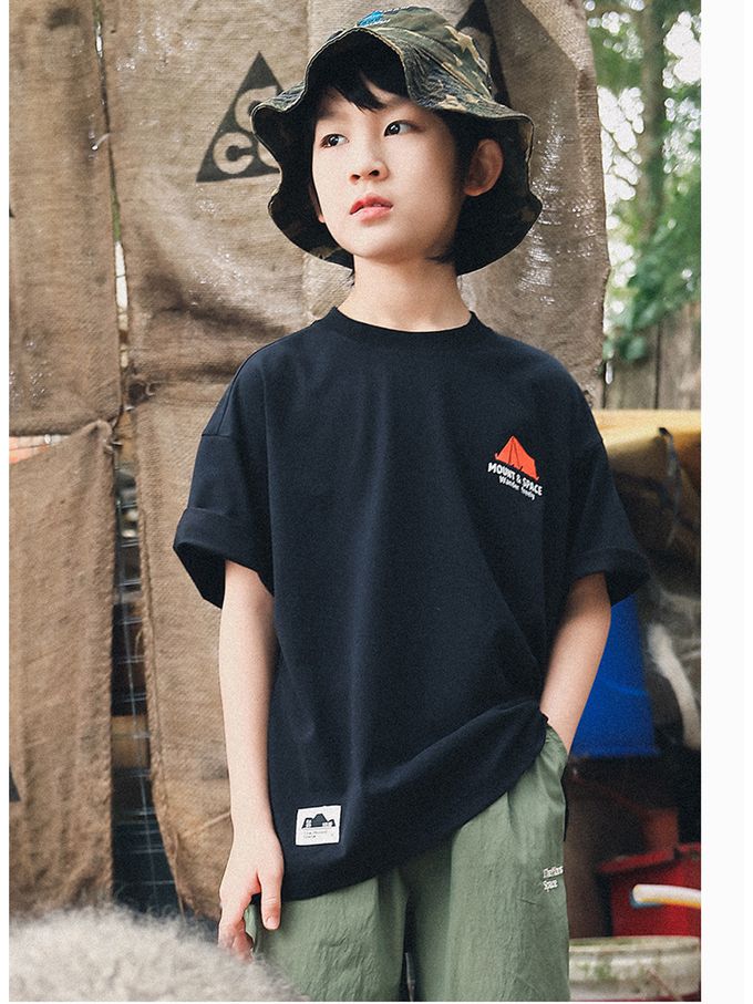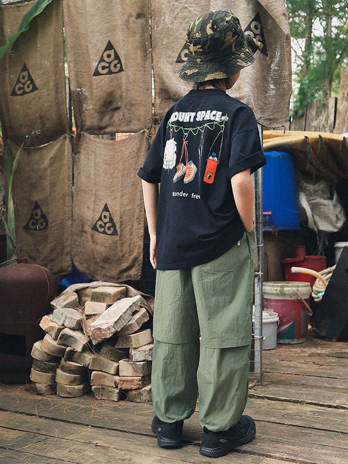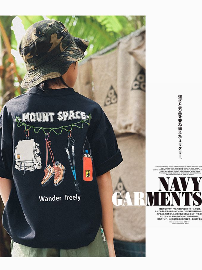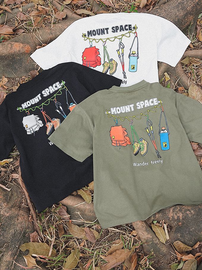 棉質圓領短袖上衣-山野漫遊者-黑色