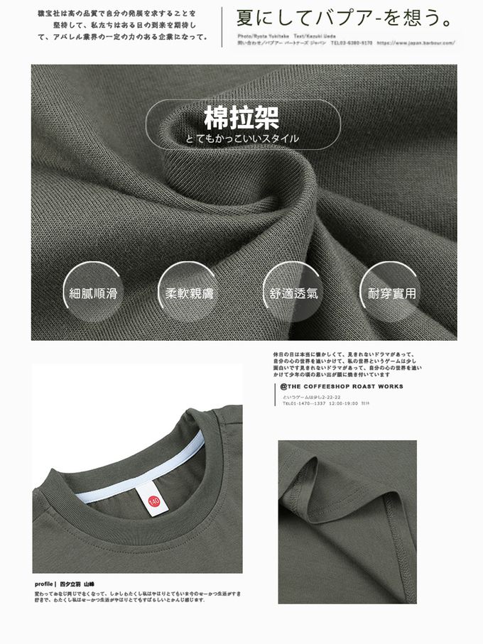 Y B S - 棉質圓領短袖上衣-不收編布標-藏青