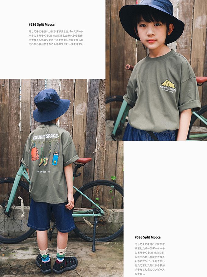 Y B S - 純棉圓領短袖上衣-山系露營-咖色