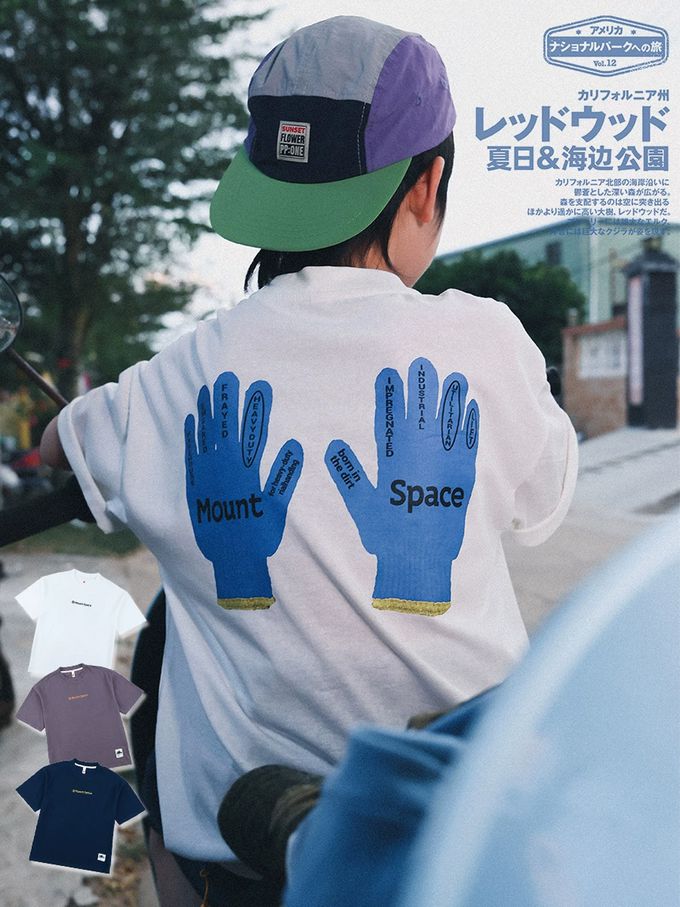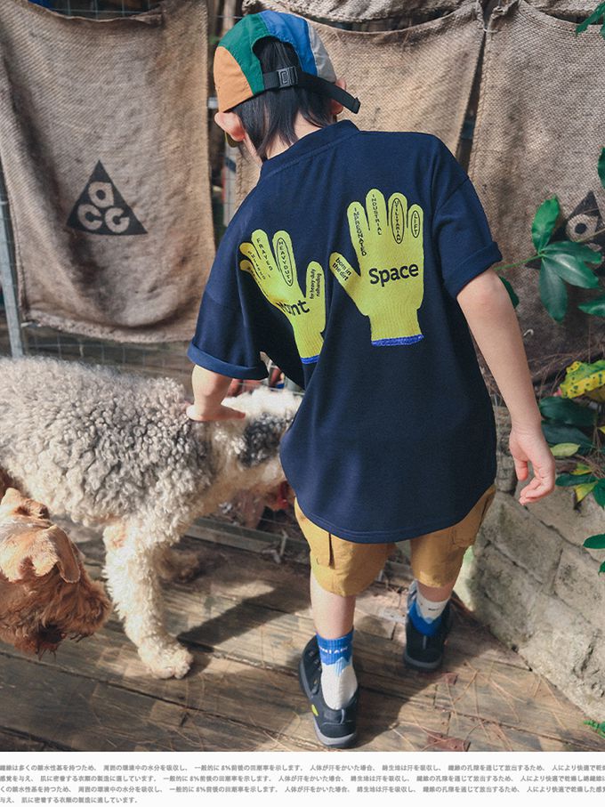 休閒圓領短袖上衣-手套印花-藏青