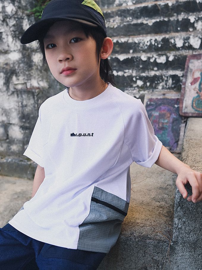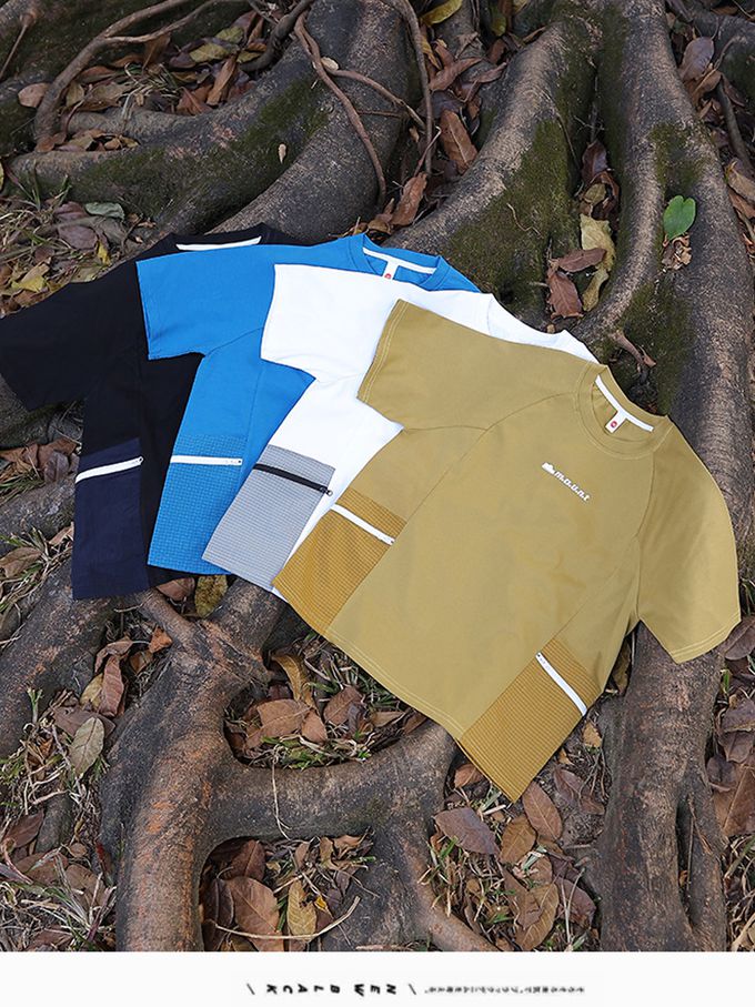 休閒圓領短袖上衣-拉鏈口袋-白色