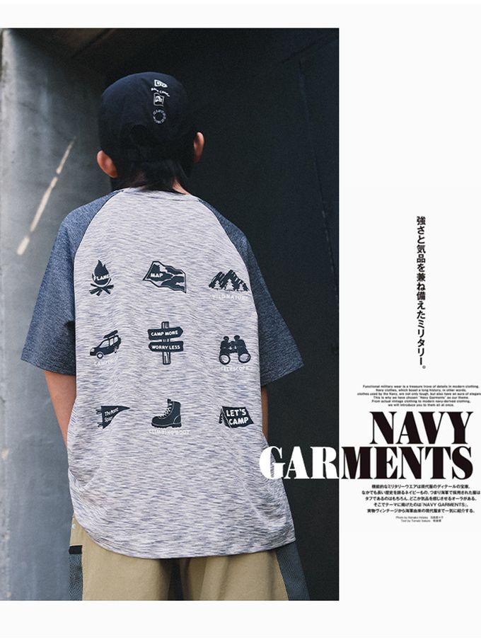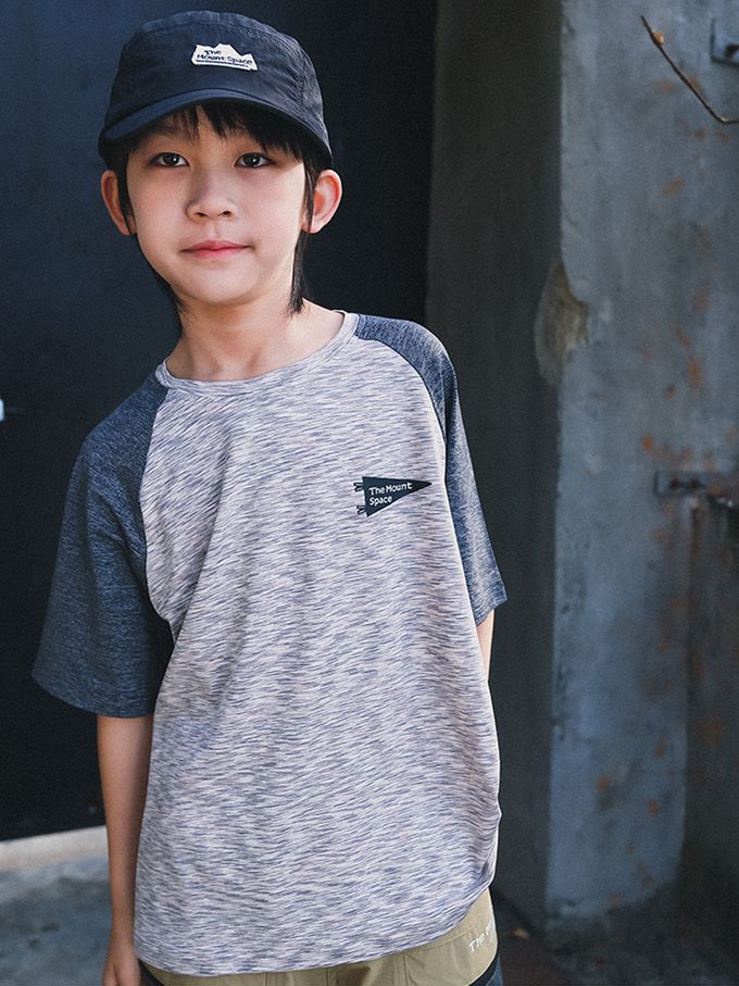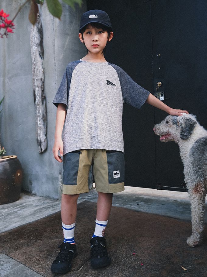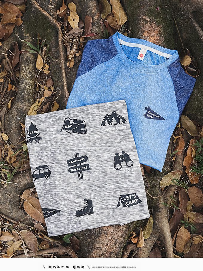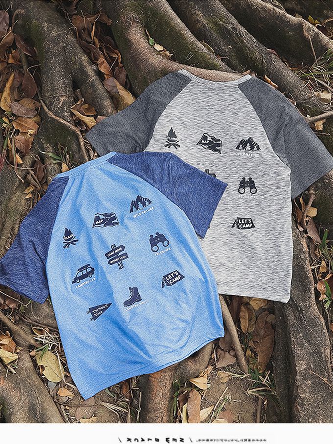 休閒圓領短袖上衣-野營圖鑑-拼色灰