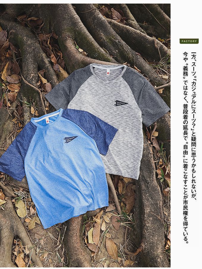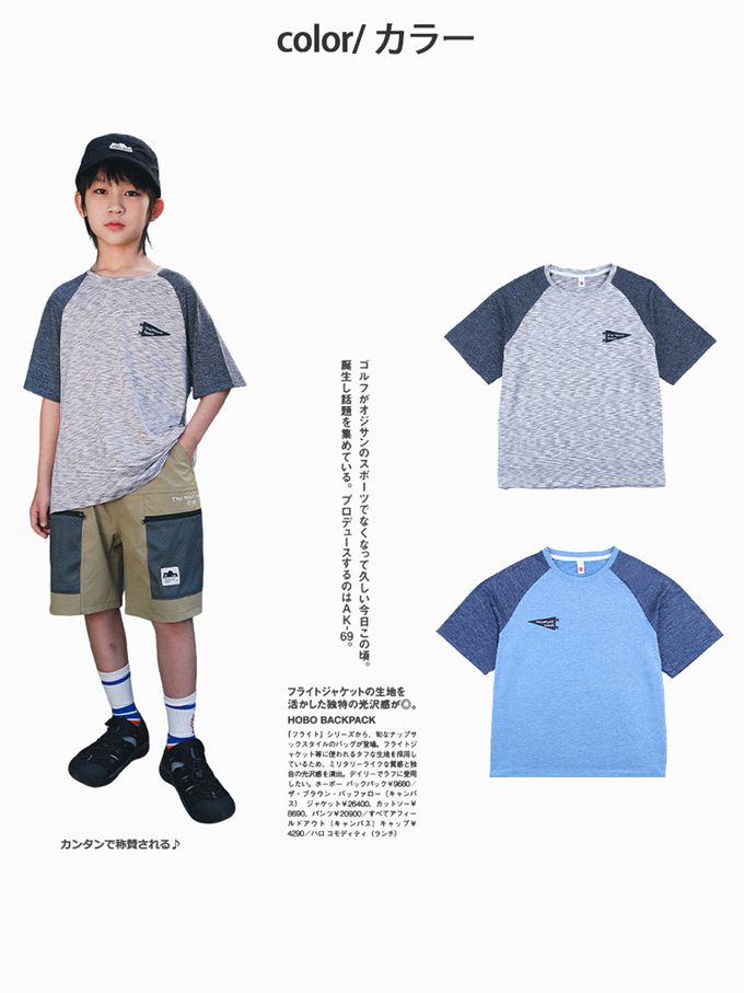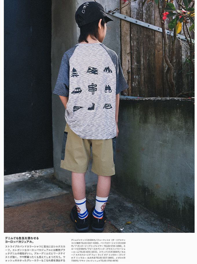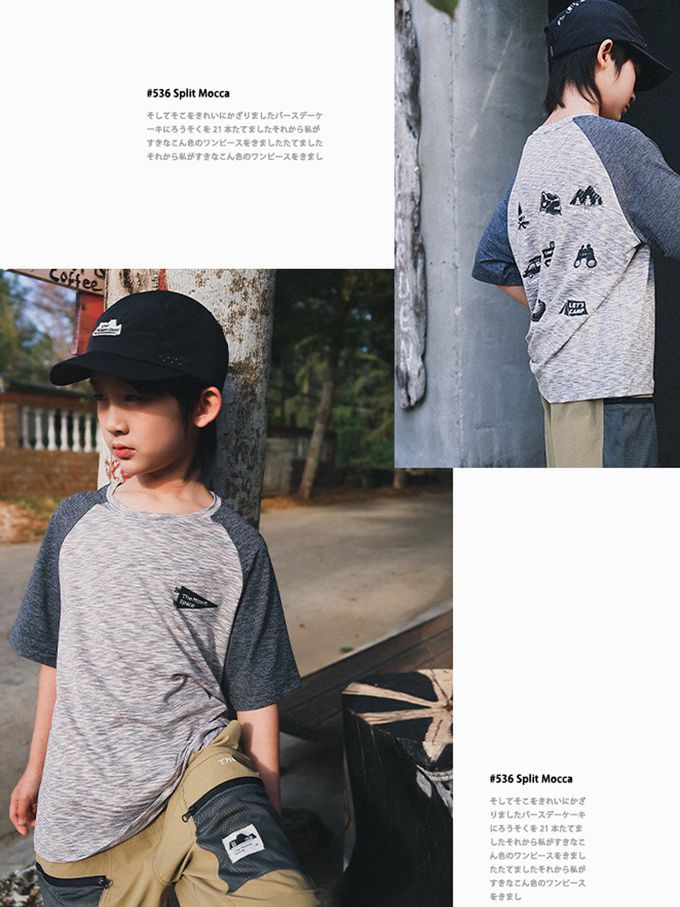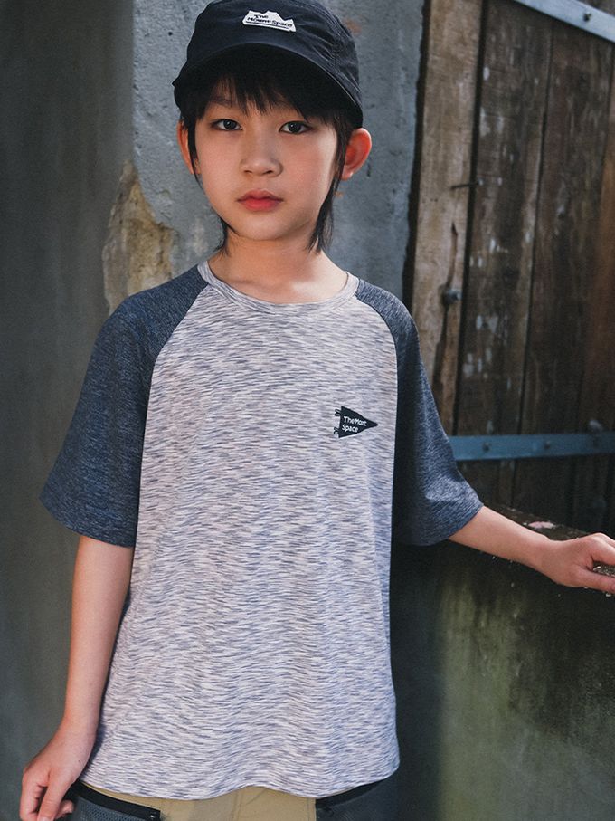 休閒圓領短袖上衣-野營圖鑑-拼色灰