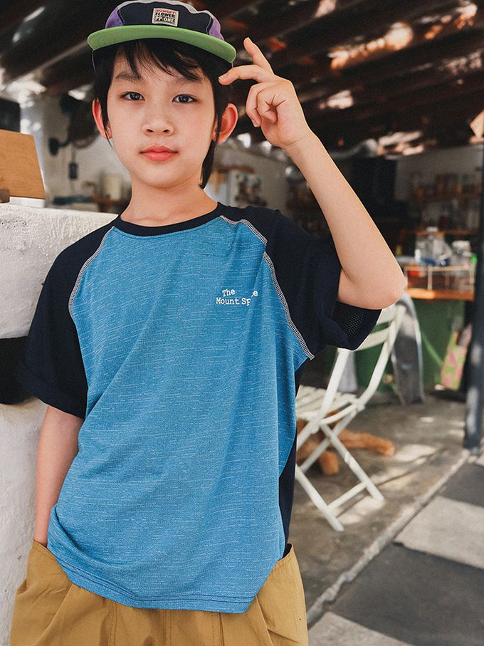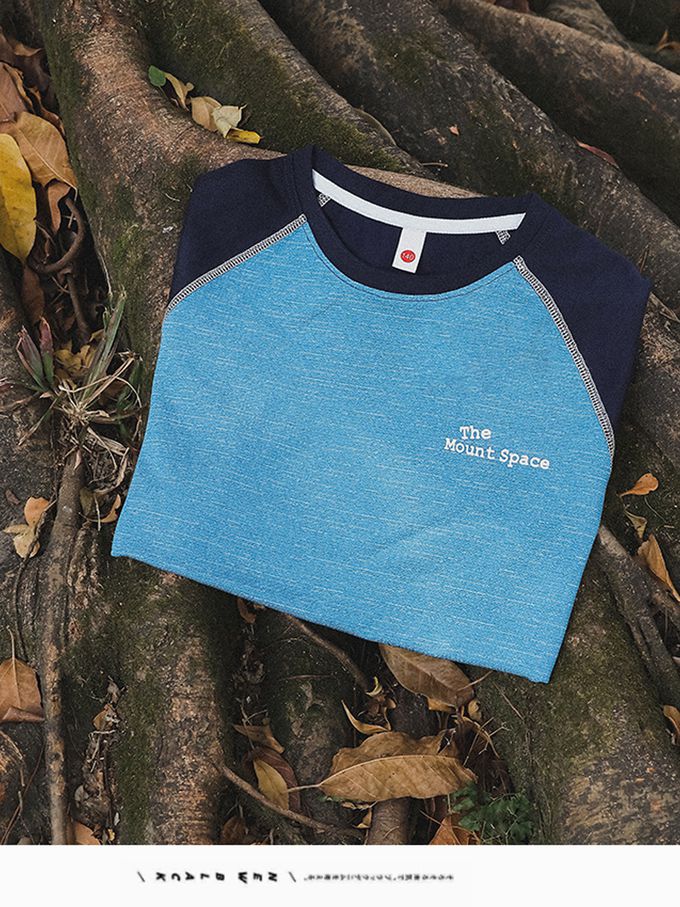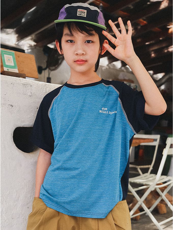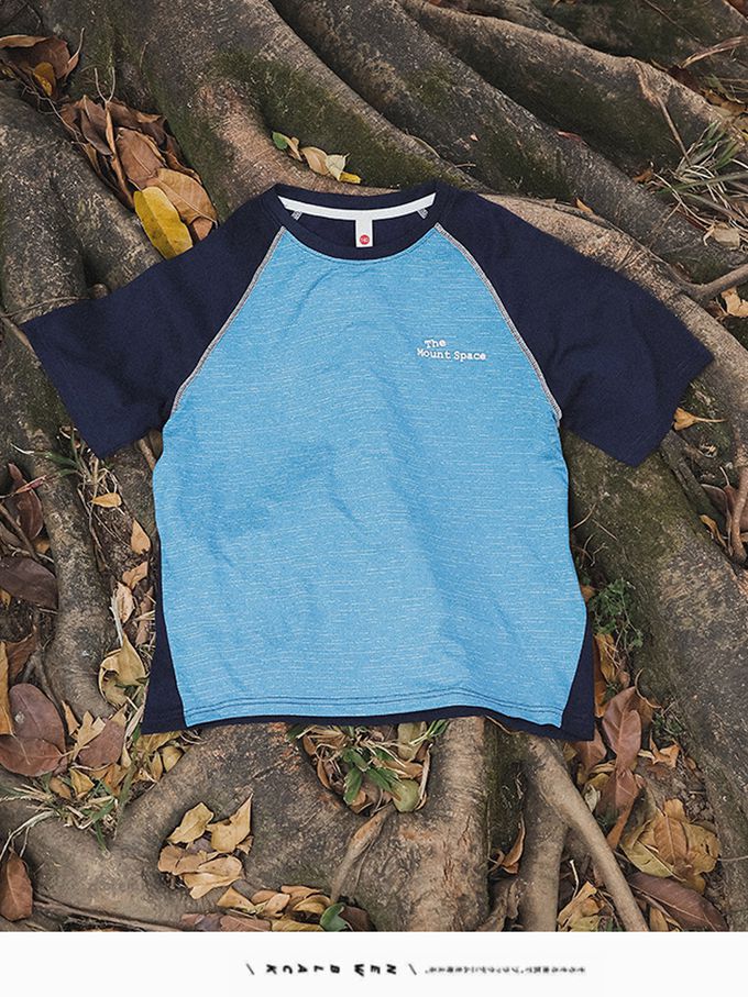 前後撞色短袖上衣-藍色