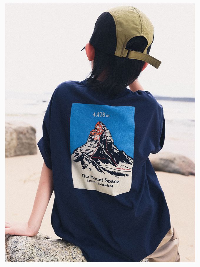 Y B S - 純棉圓領短袖上衣-山系露營-咖色