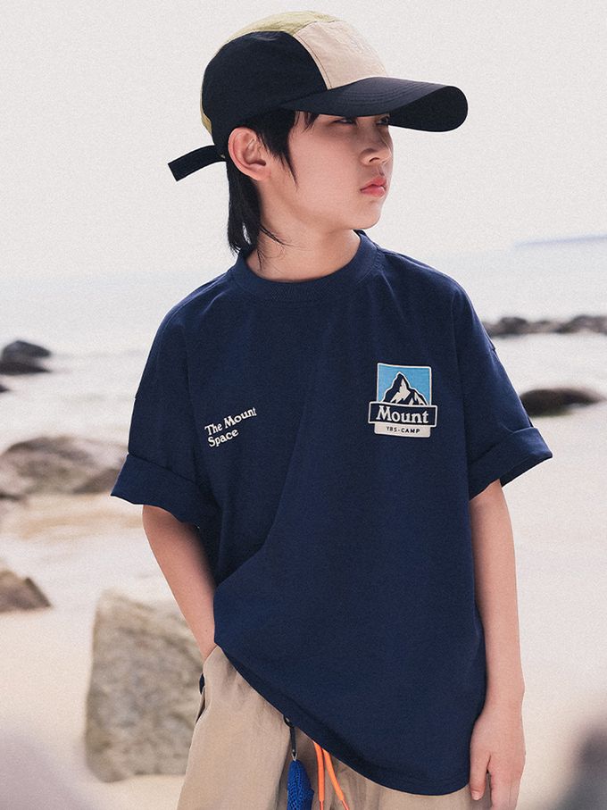 純棉圓領短袖上衣-巔峰視界-藏青