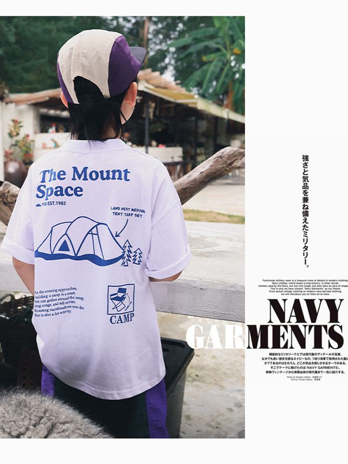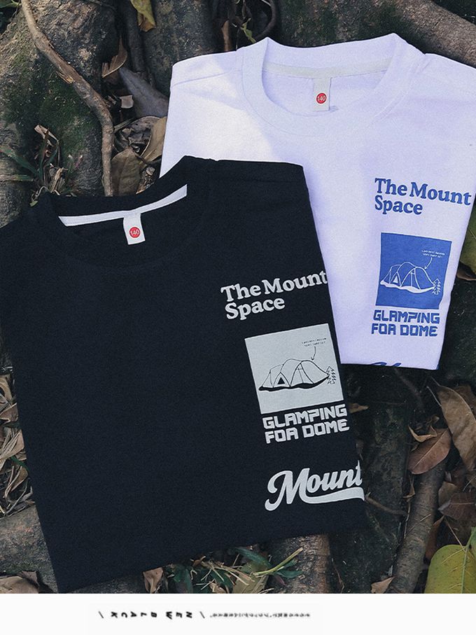 休閒圓領短袖上衣-露營基地-白色