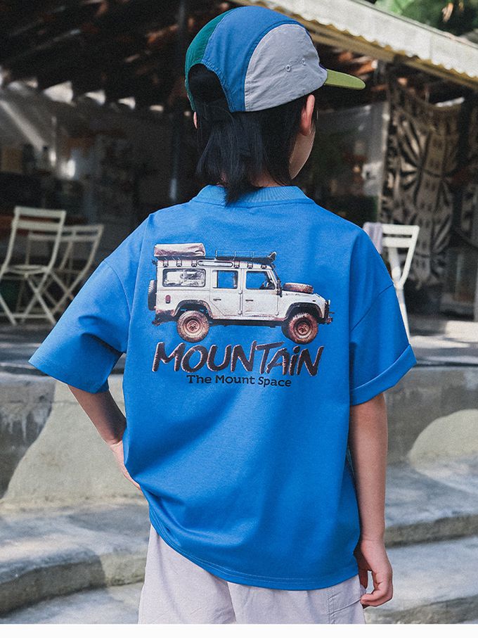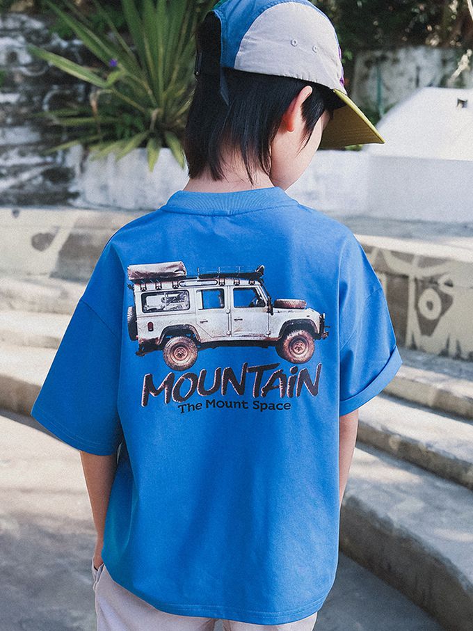 休閒圓領短袖上衣-越野冒險家-藍色