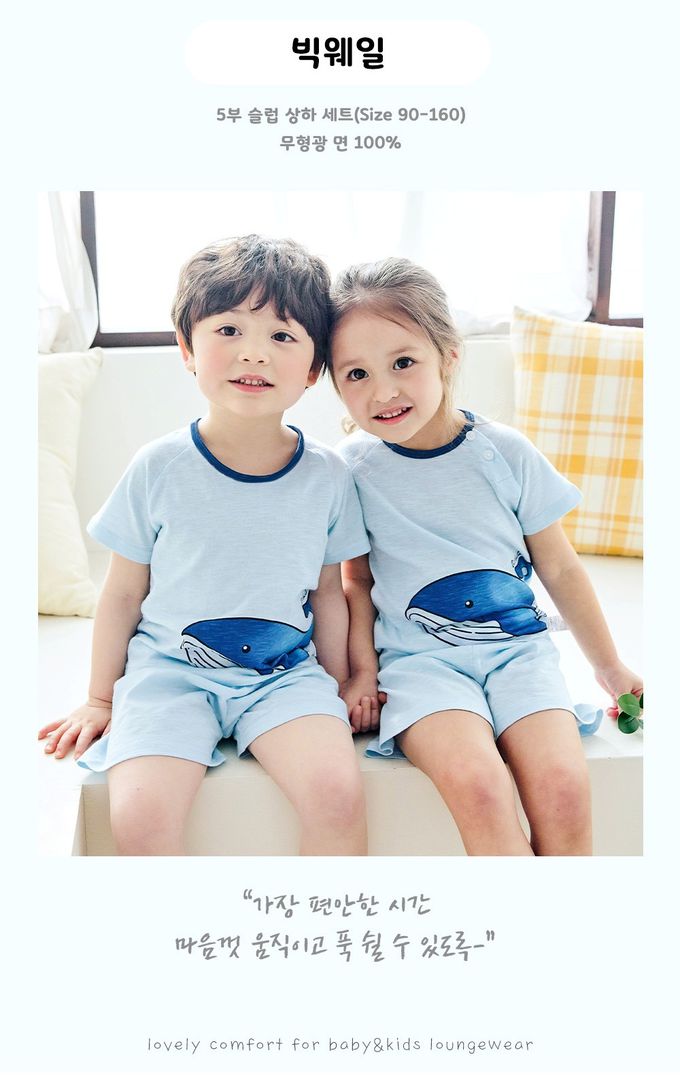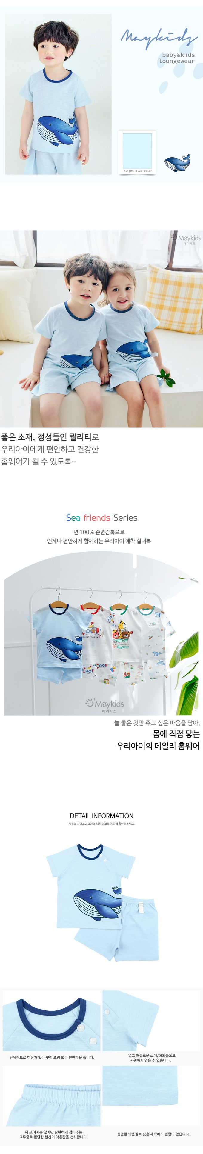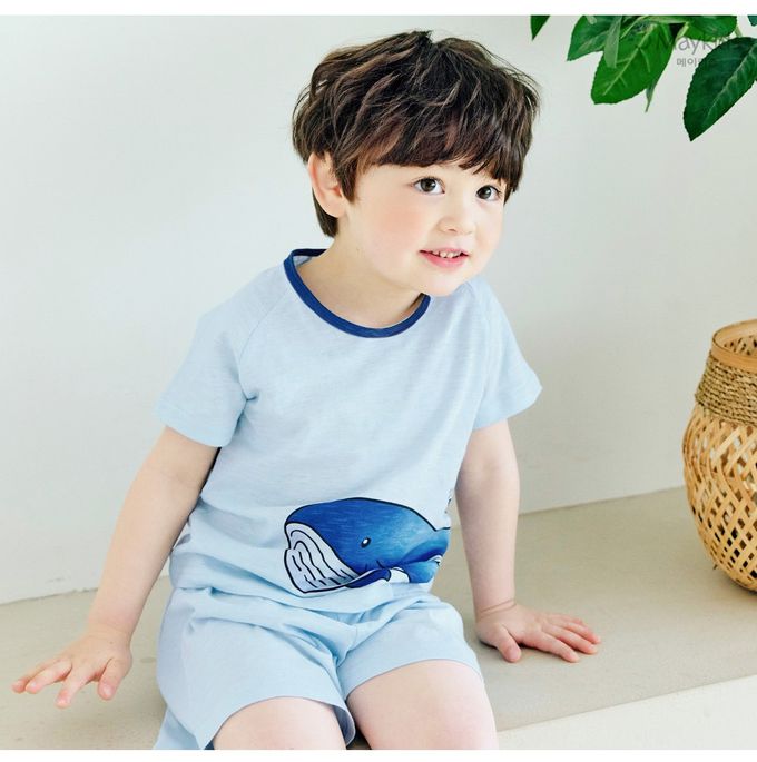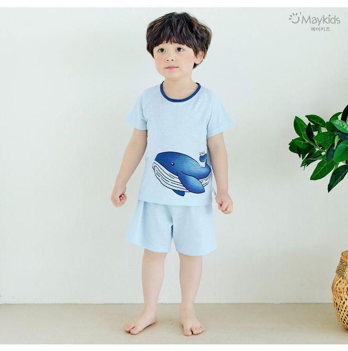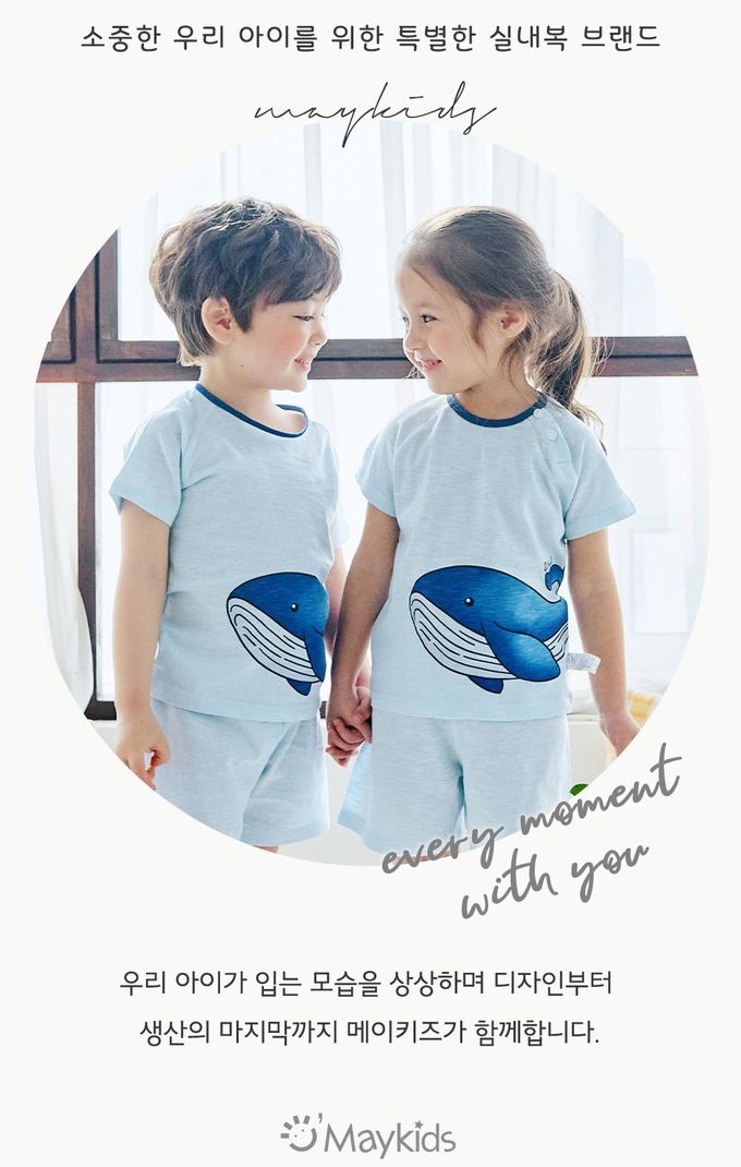 韓國 Maykids - 輕薄細柔棉短袖家居服-悠遊鯨魚-淺藍