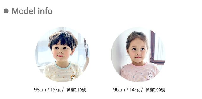 1. 尺寸表單位皆為公分(cm),實際尺寸會因布料彈性、水洗、測量起迄點等因素略有誤差。建議參考孩子平時穿著衣物尺寸進行選購。
