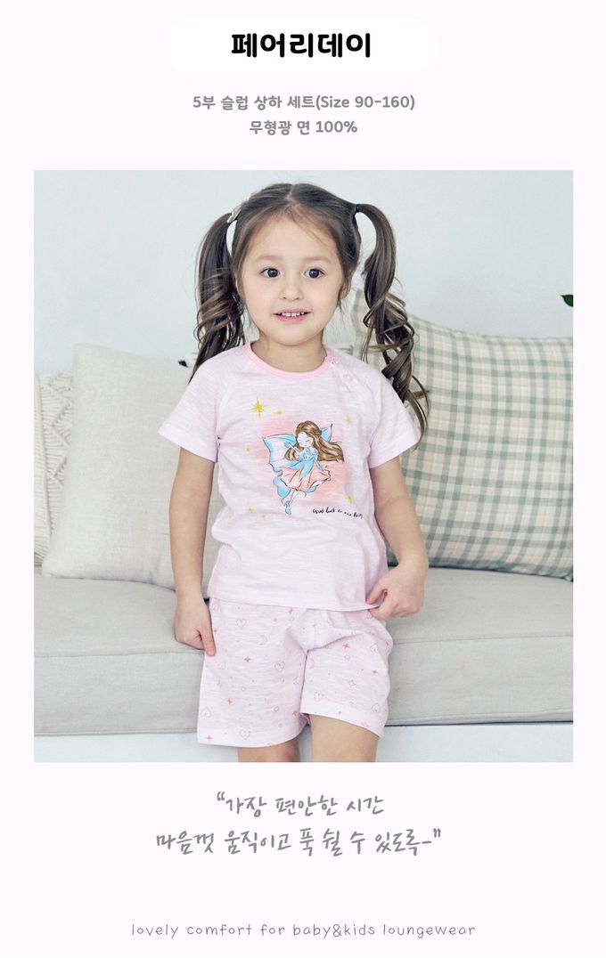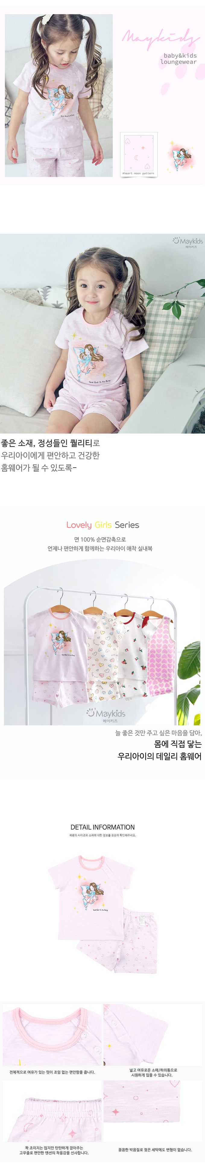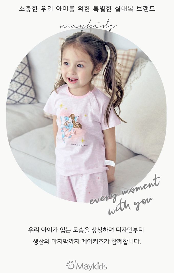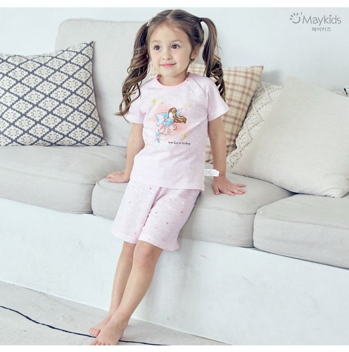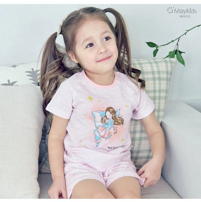 韓國 Maykids - 輕薄細柔棉短袖家居服-沈睡仙子-淺粉