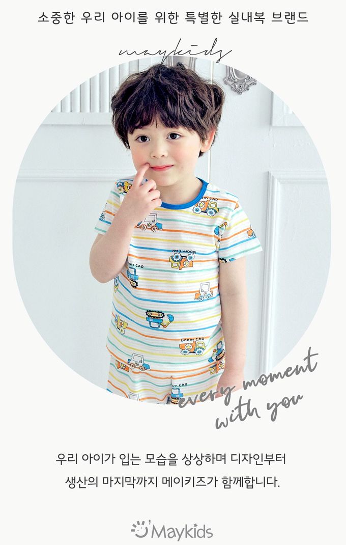韓國 Maykids - 透氣條紋提花棉短袖家居服-MOVE警車