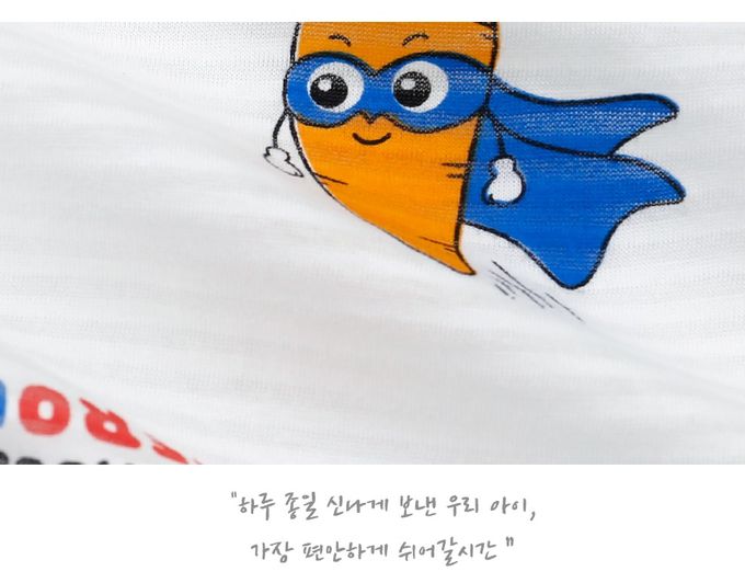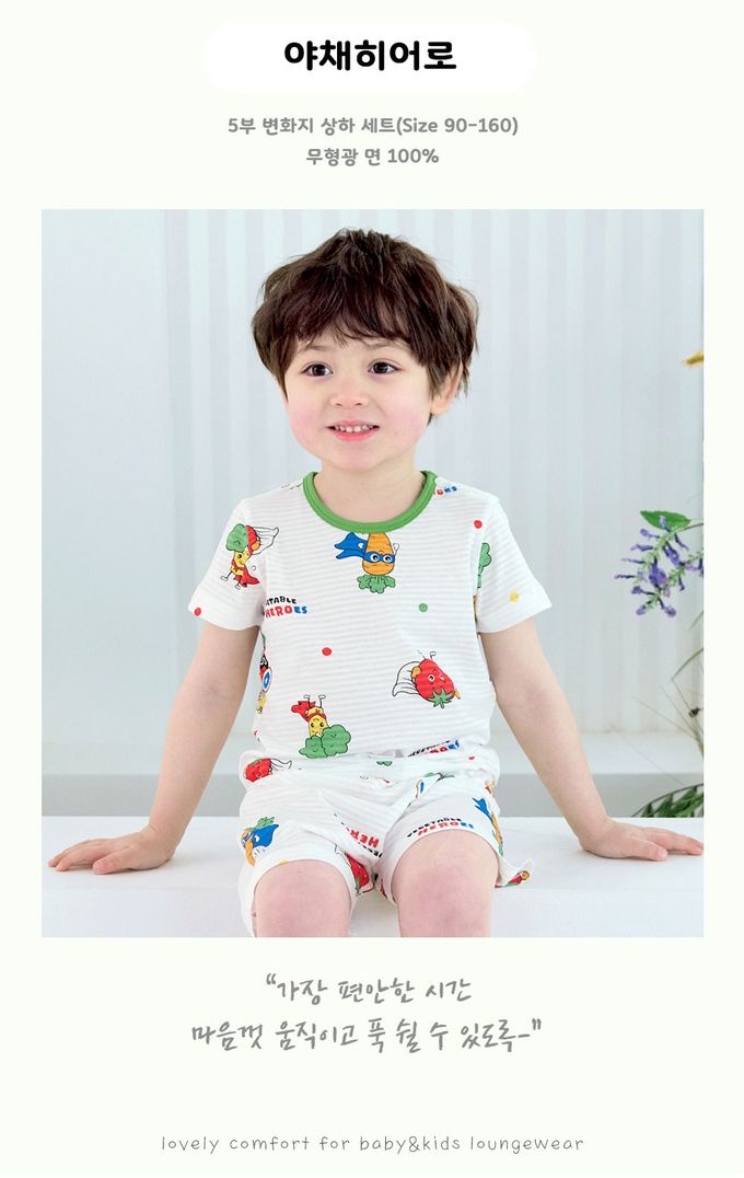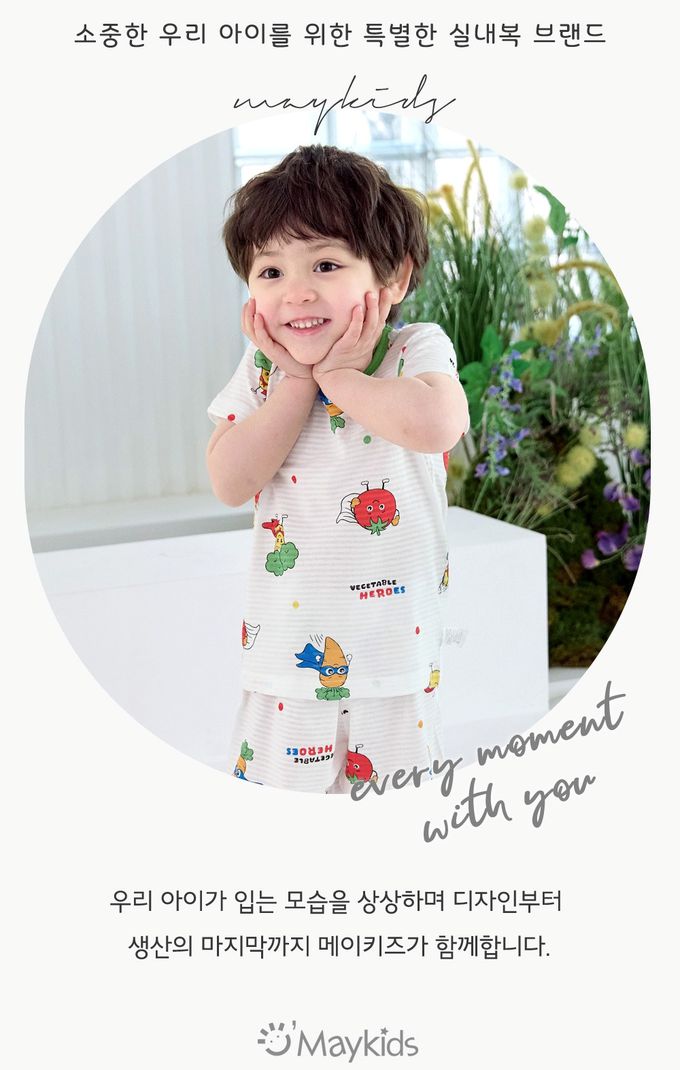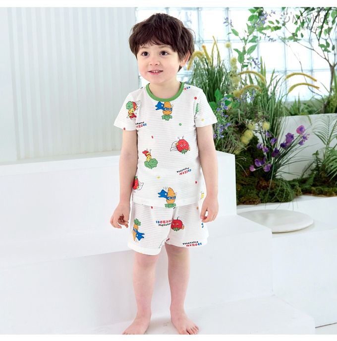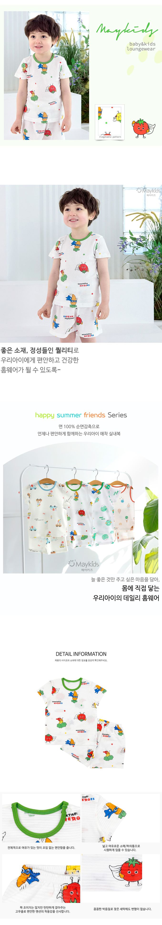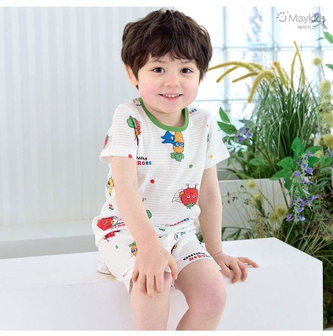 韓國 Maykids - 透氣條紋提花棉短袖家居服-蒙面蔬菜超人-白
