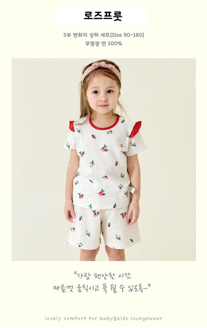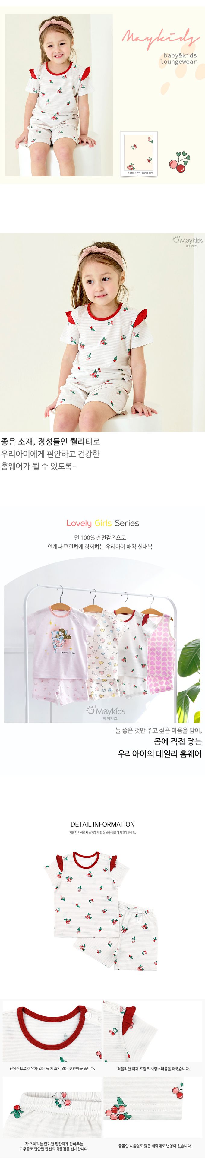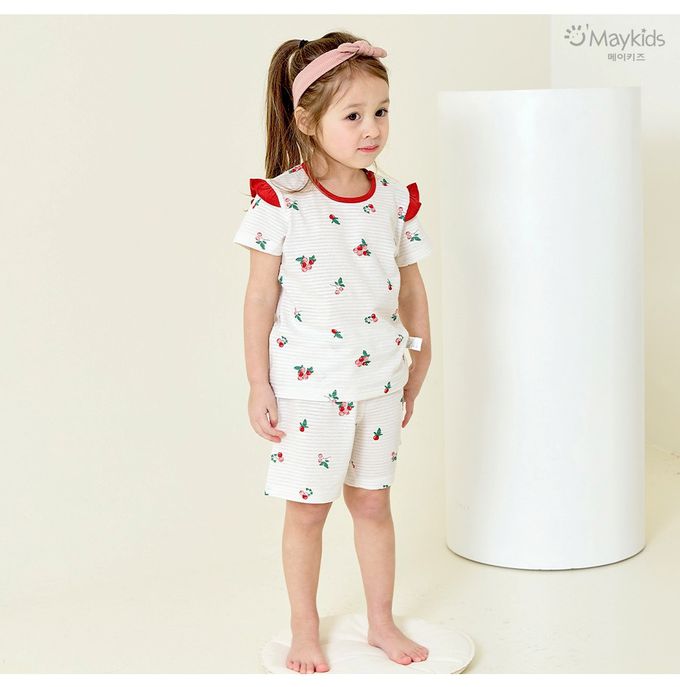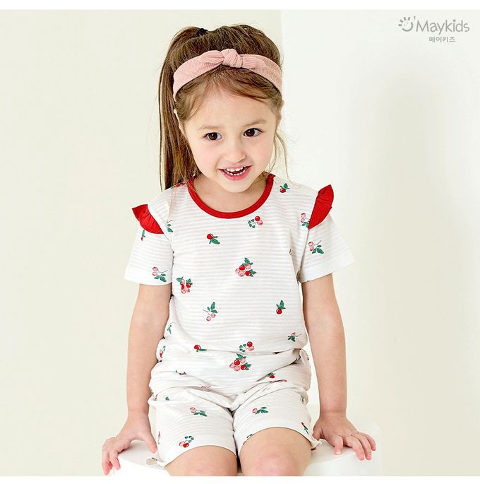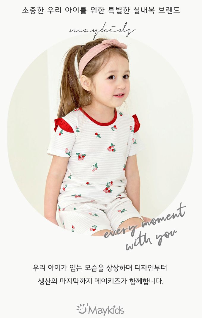 韓國 Maykids - 透氣條紋提花棉短袖家居服-迷你莓果-米白