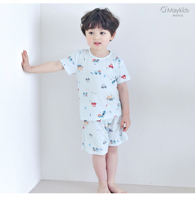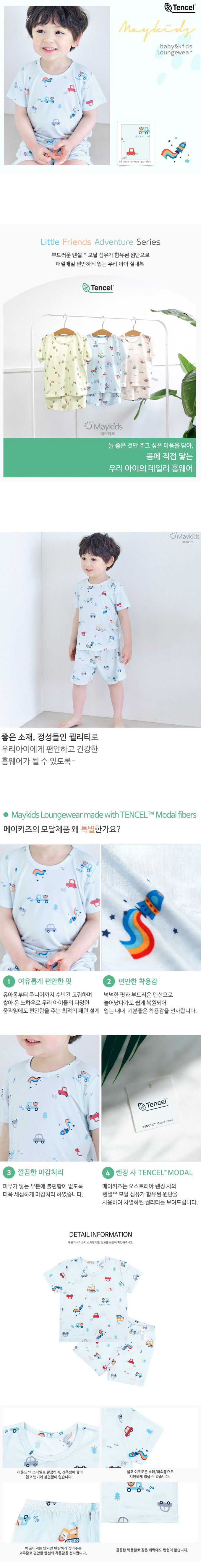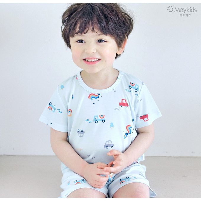 韓國 Maykids - 天絲莫代爾透氣短袖家居服-繽紛交通工具-天藍
