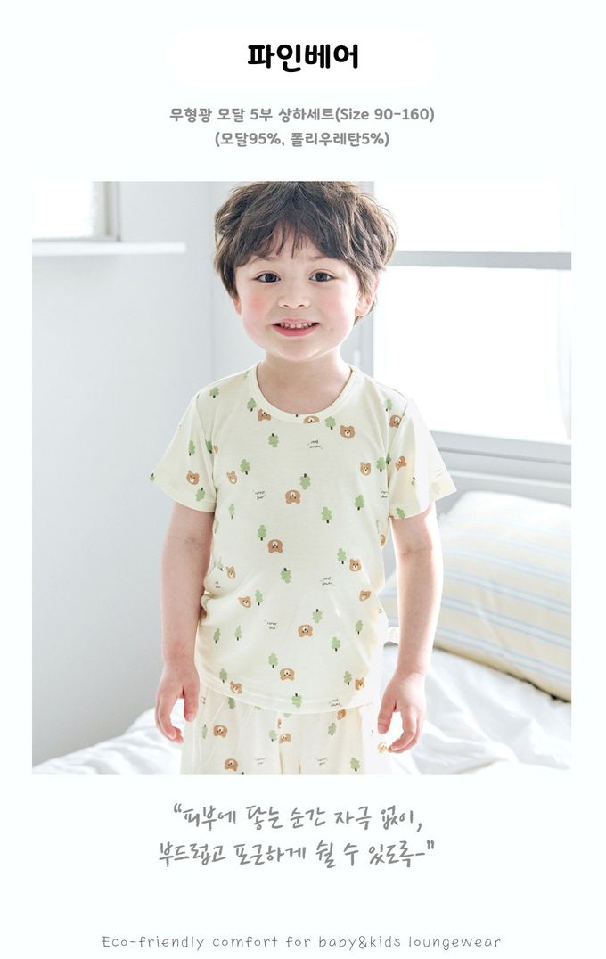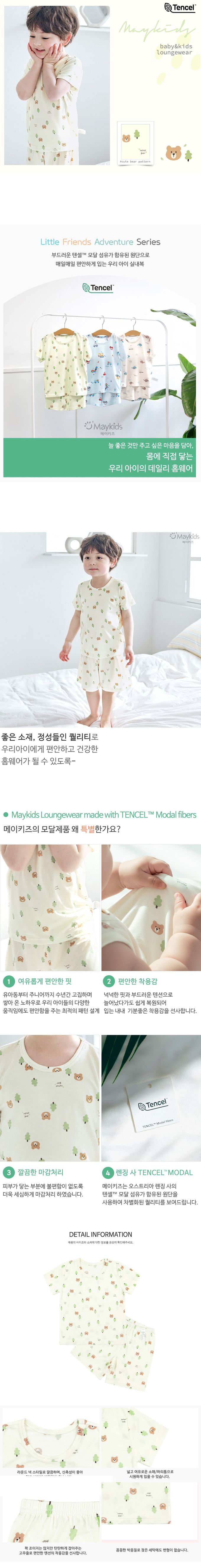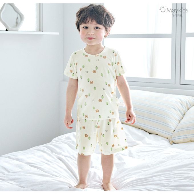 韓國 Maykids - 天絲莫代爾透氣短袖家居服-樹木熊熊-米黃