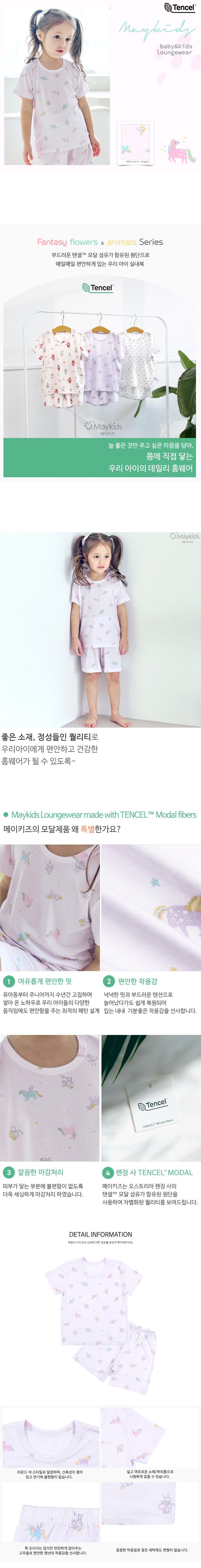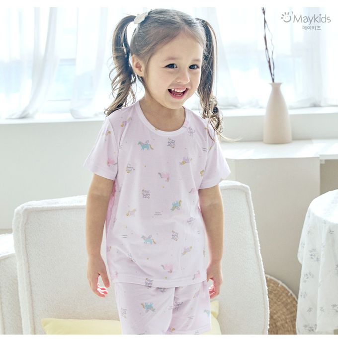 韓國 Maykids - 天絲莫代爾透氣短袖家居服-夢境獨角獸-淺紫