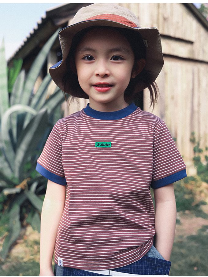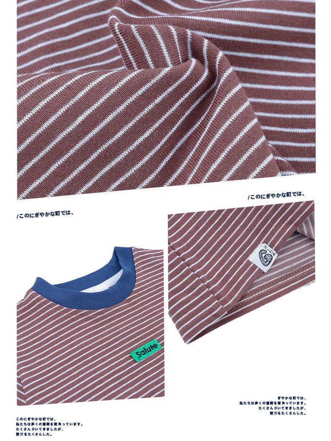 撞色條紋短袖上衣-紅棕