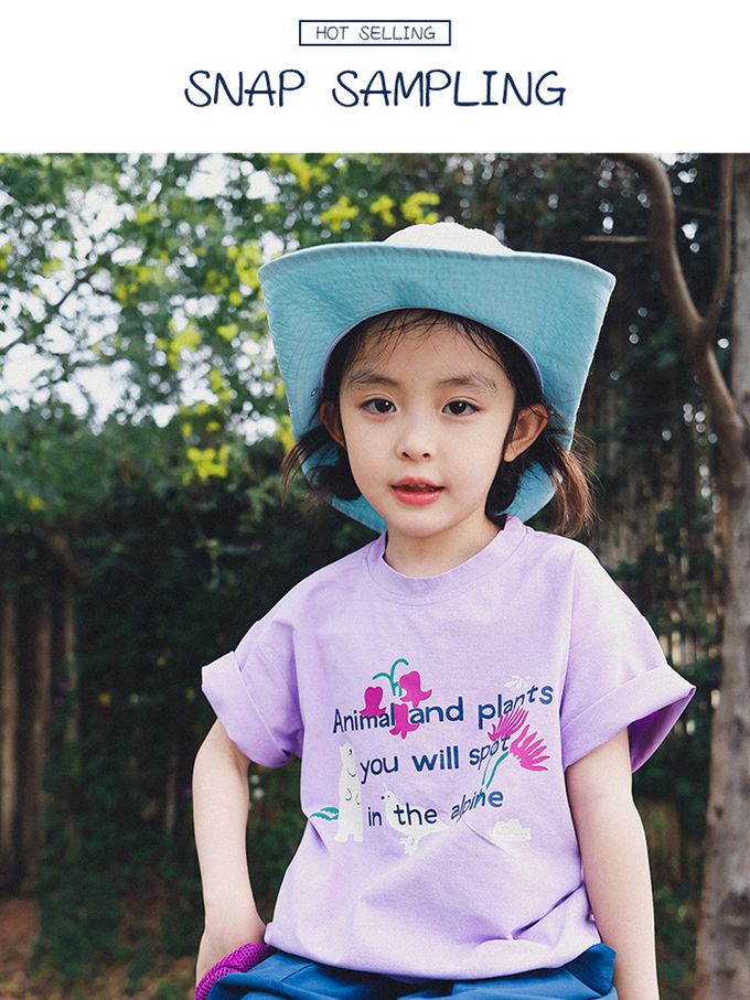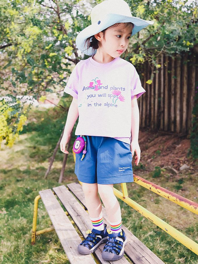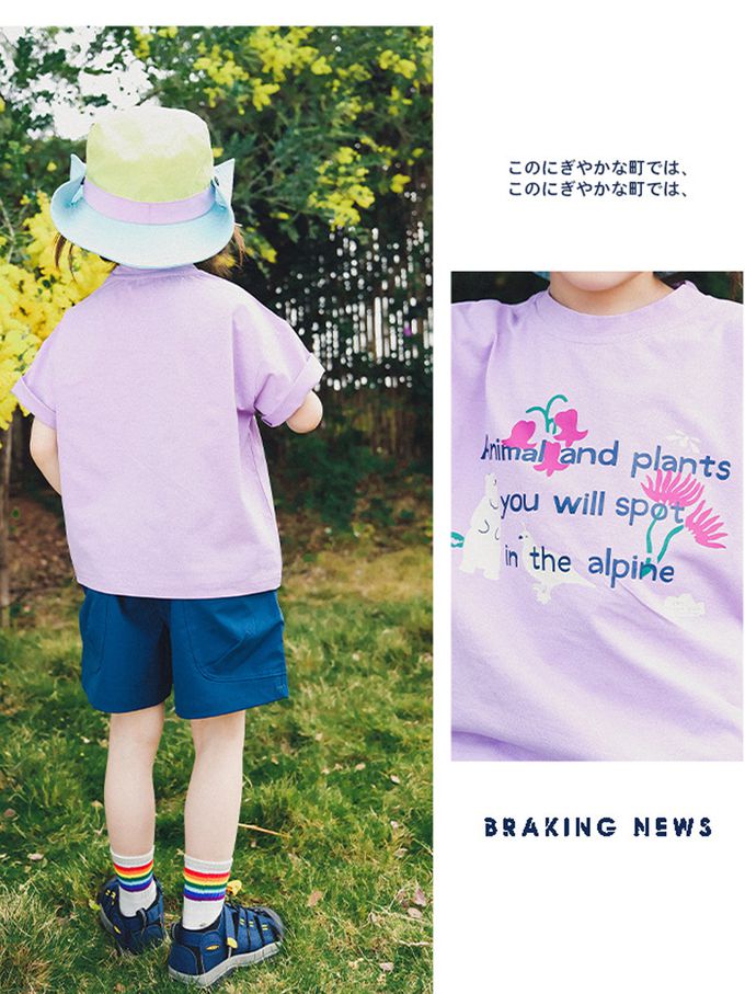 棉質圓領短袖上衣-高山動植物-紫色