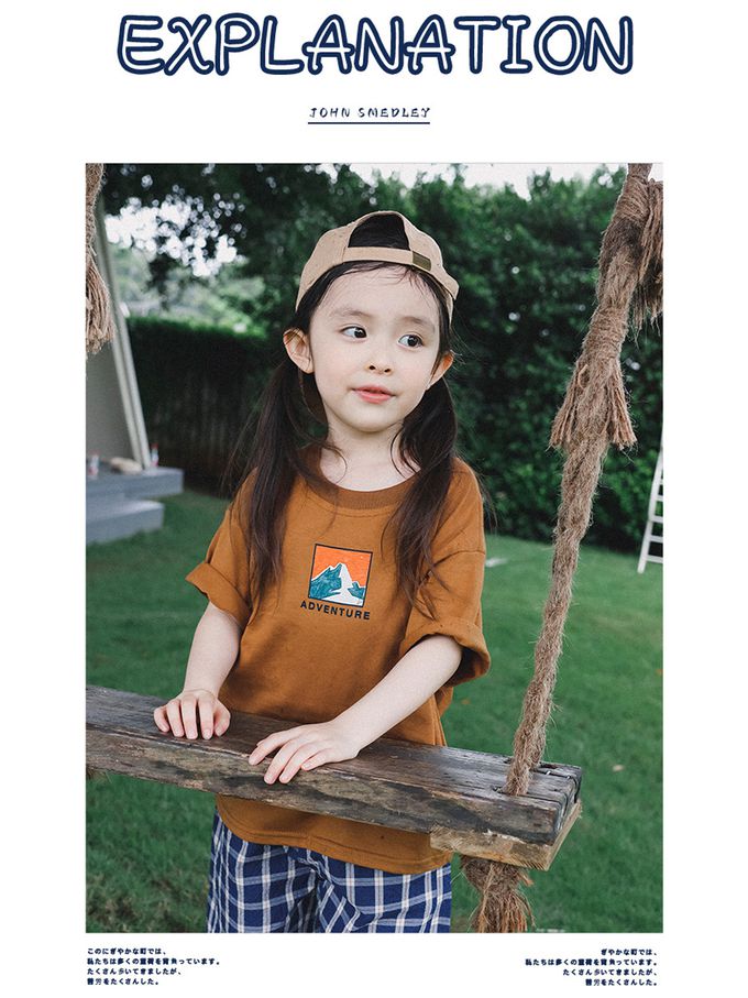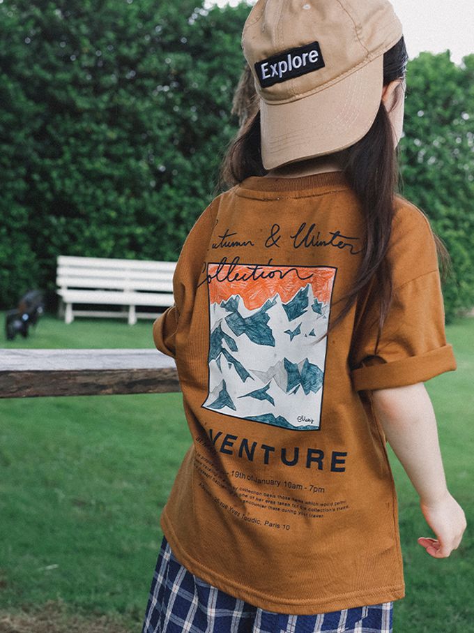 純棉圓領短袖上衣-山脈冒險誌-咖色