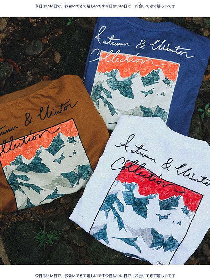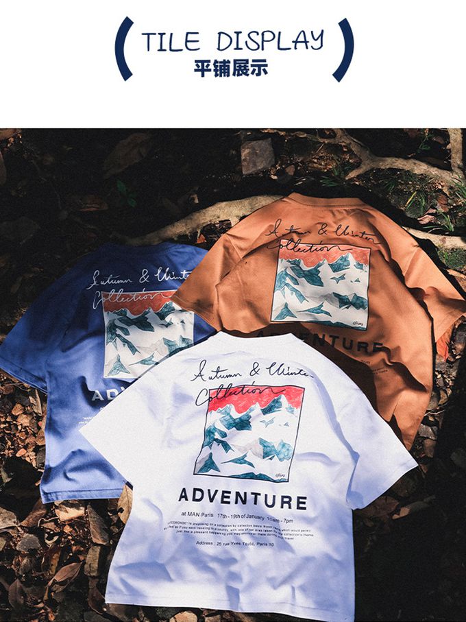 純棉圓領短袖上衣-山脈冒險誌-牛仔藍