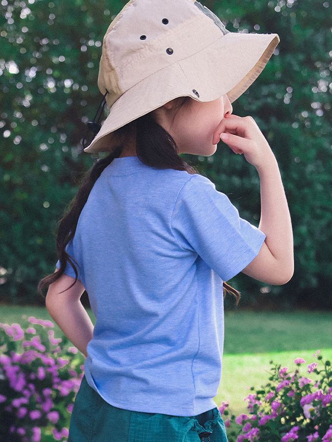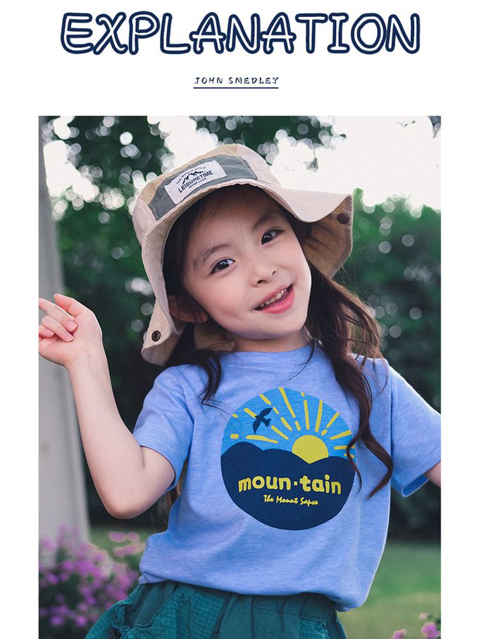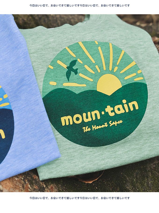 休閒圓領短袖上衣-日出群山-藍色