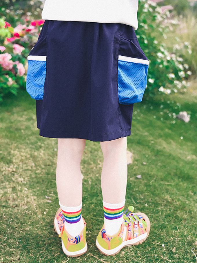 運動休閒速乾短裙-撞色口袋-藏青
