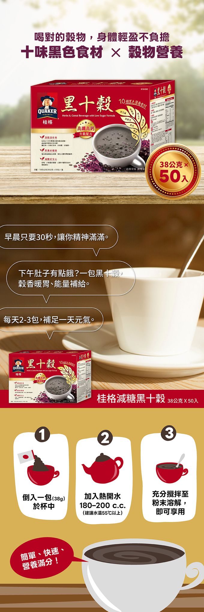 品名:桂格 減糖黑十穀(38公克X50入/箱)