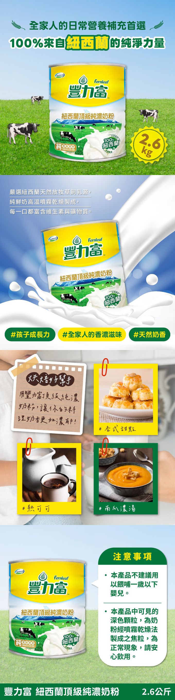 品名:豐力富 紐西蘭頂級純濃奶粉(2.6kg/入)