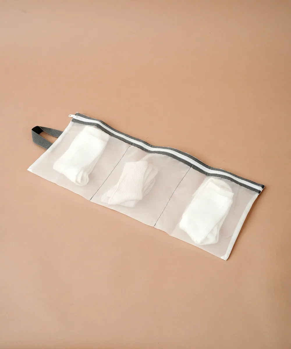 日本 3COINS - 高密度三格分層小物洗衣曬衣袋