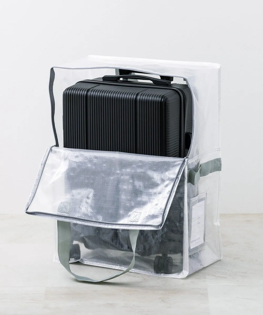 日本 3COINS - 半透明多功能直立開口行李箱收納袋-耐重15kg-淺灰 (45x60x25cm)
