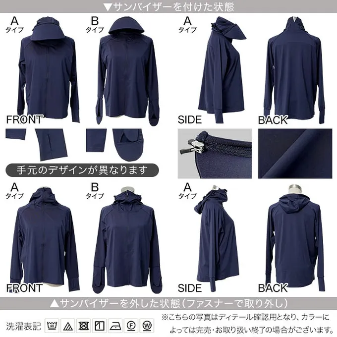 日本 Kobe Lettuce - 抗UV 接觸冷感全方位連帽防曬外套-(可選袖)-海軍藍