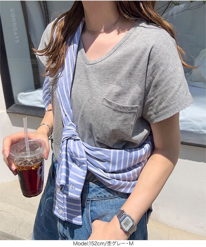 • 品名:抗透汗 純棉V領口袋修身短袖上衣