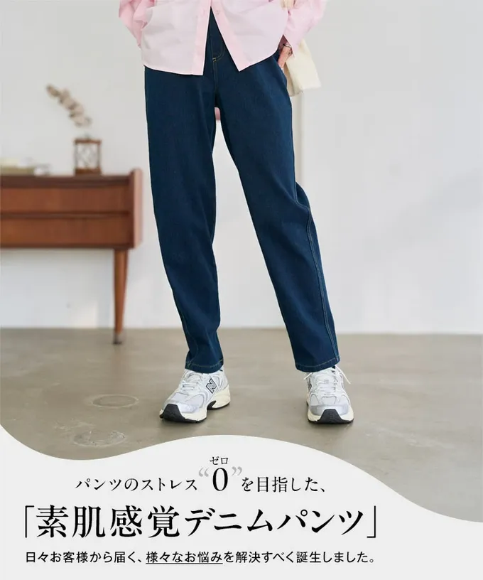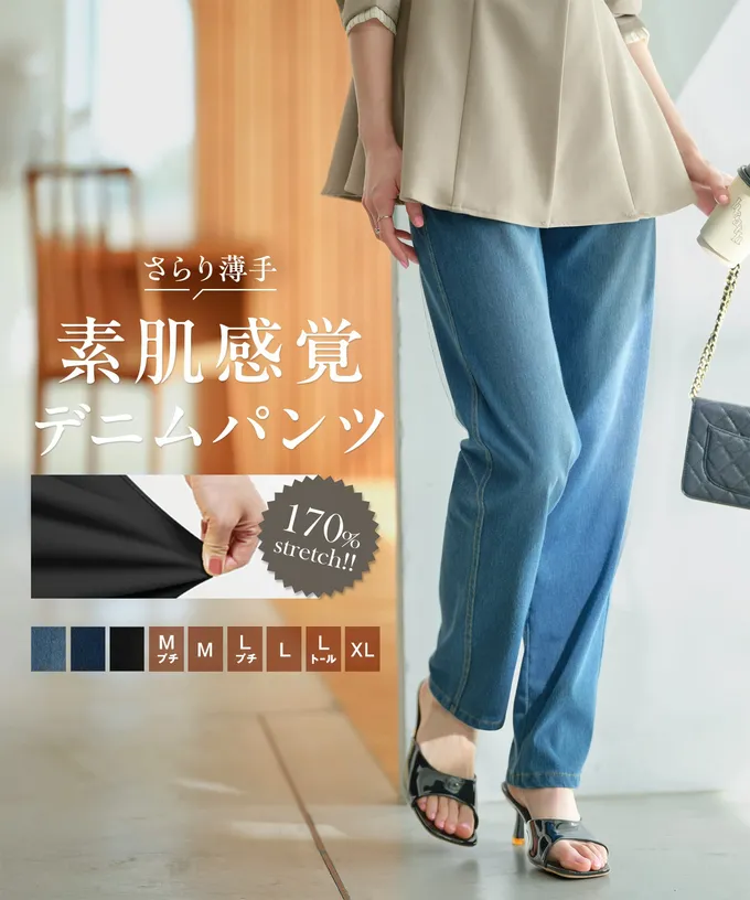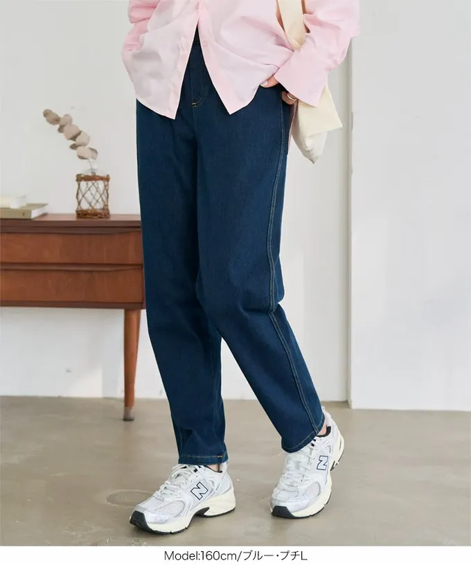 • 品名:素肌感覺 全腰鬆緊彈性直筒丹寧褲
