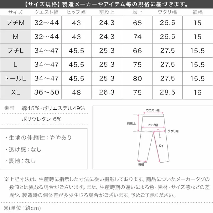 • 成分:棉 45%・聚酯纖維 49% 彈性纖維 6%