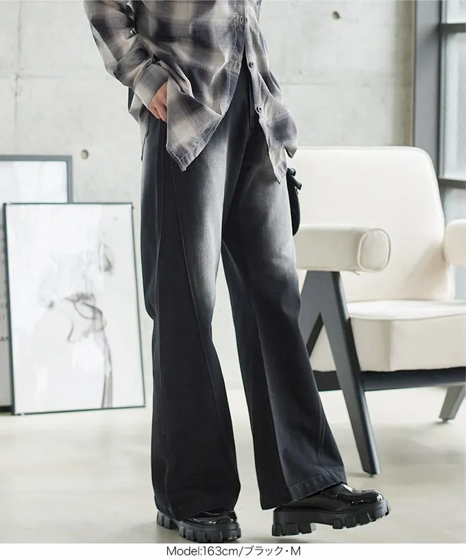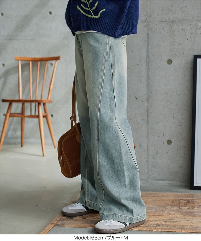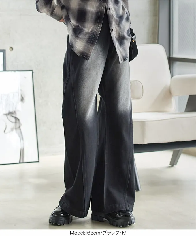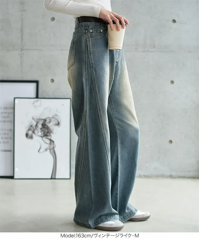 • 品名:超顯瘦復古刷色立體喇叭牛仔褲