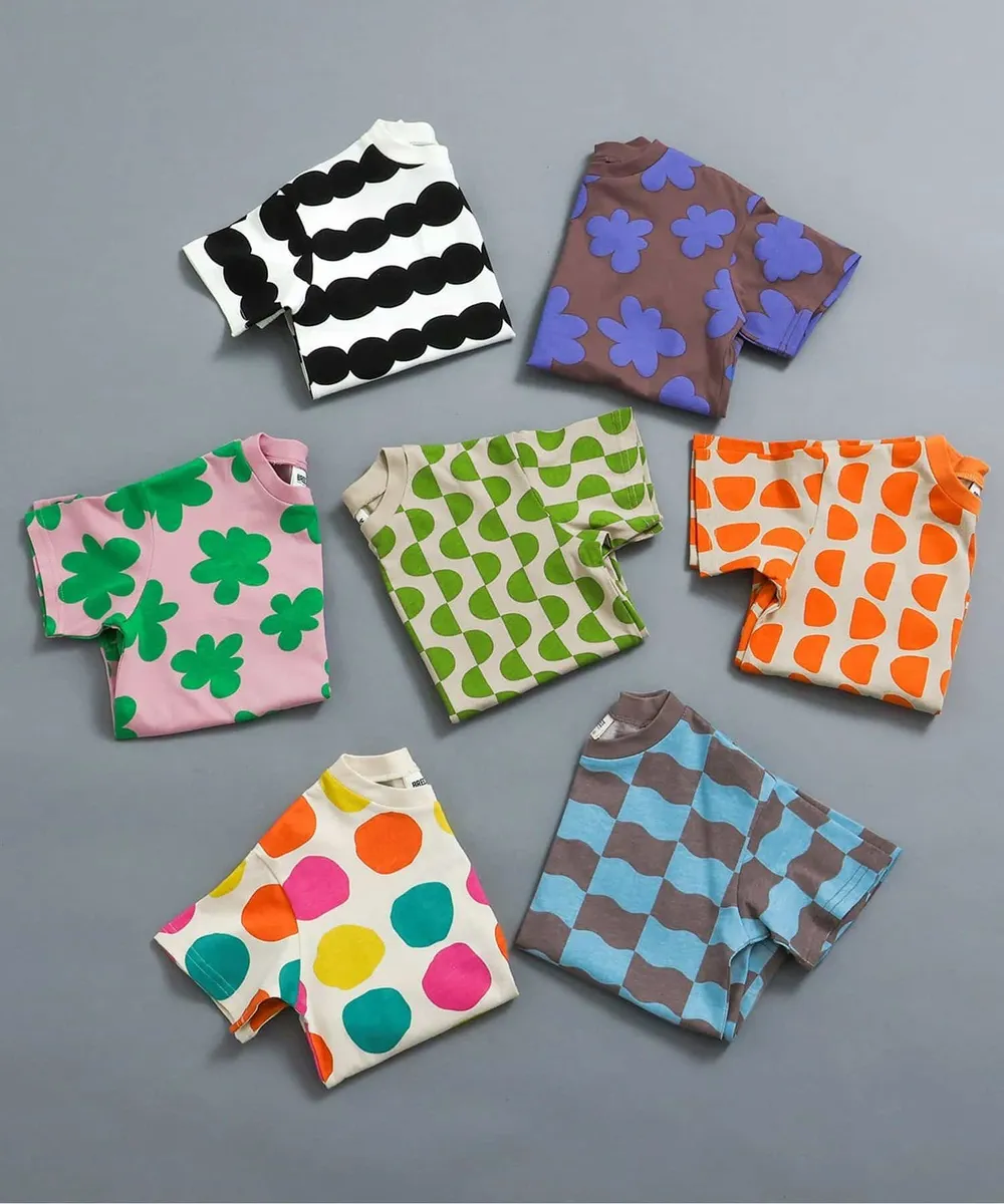 日本 BREEZE - 100%棉 活潑滿版短袖上衣-半圓-綠