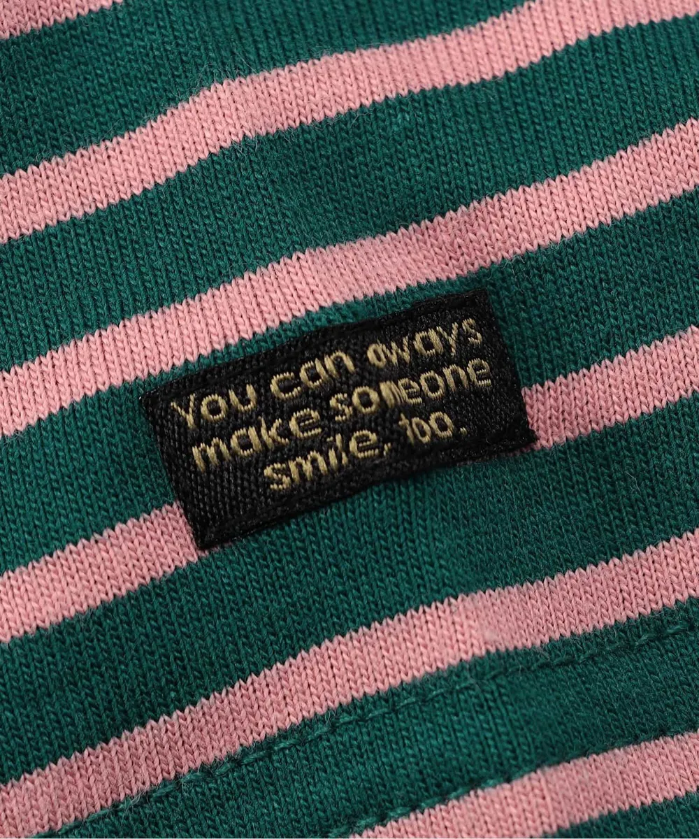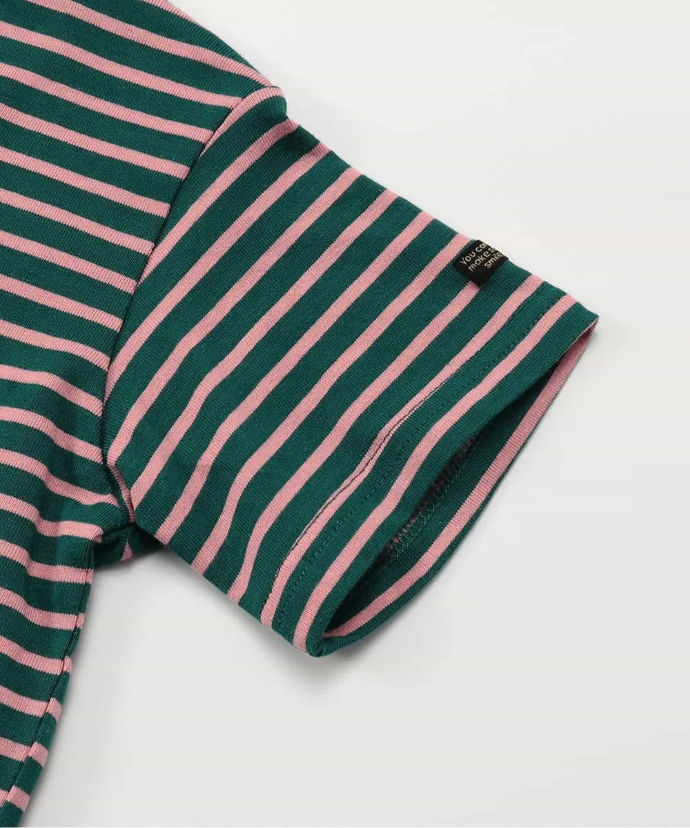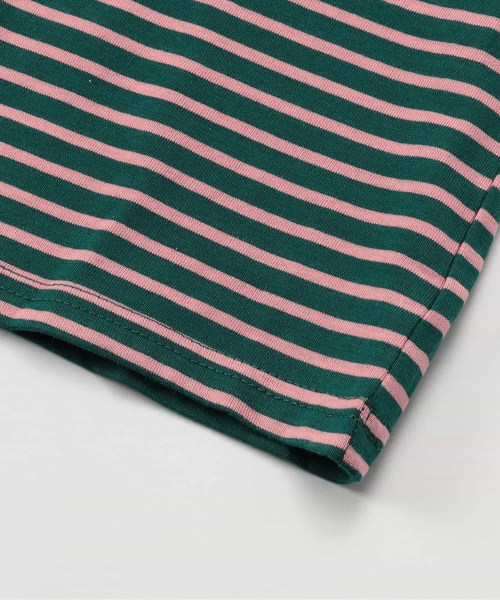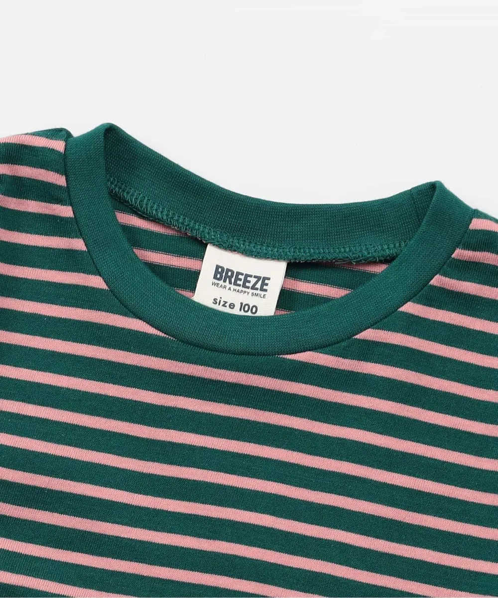 日本 BREEZE - 純棉百搭定番短袖上衣-橫條紋-濃綠x粉紅