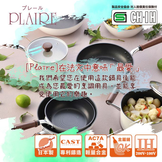 日本製PLAIRE尊爵白IH輕量不沾平底鍋26cm可用金屬鏟/不挑爐具