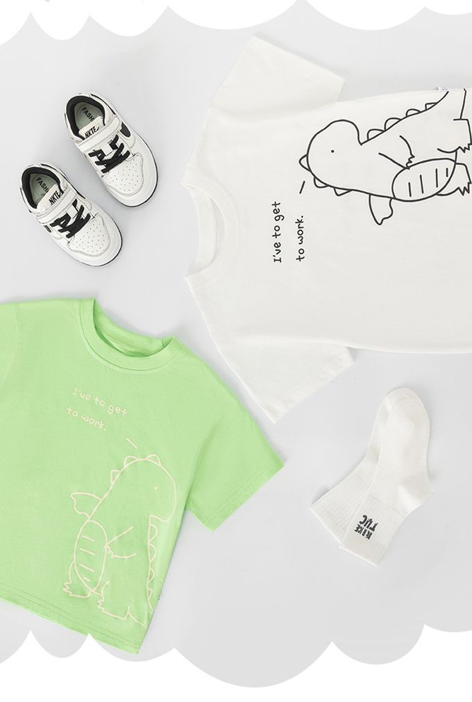 BE TOP - 純棉短袖上衣-Hello!長脖子恐龍-白色