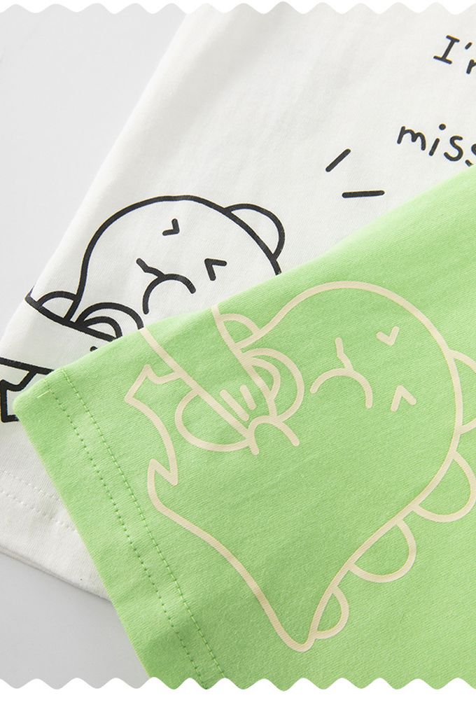 BE TOP - 純棉短袖上衣-可愛恐龍-黃藍拼袖