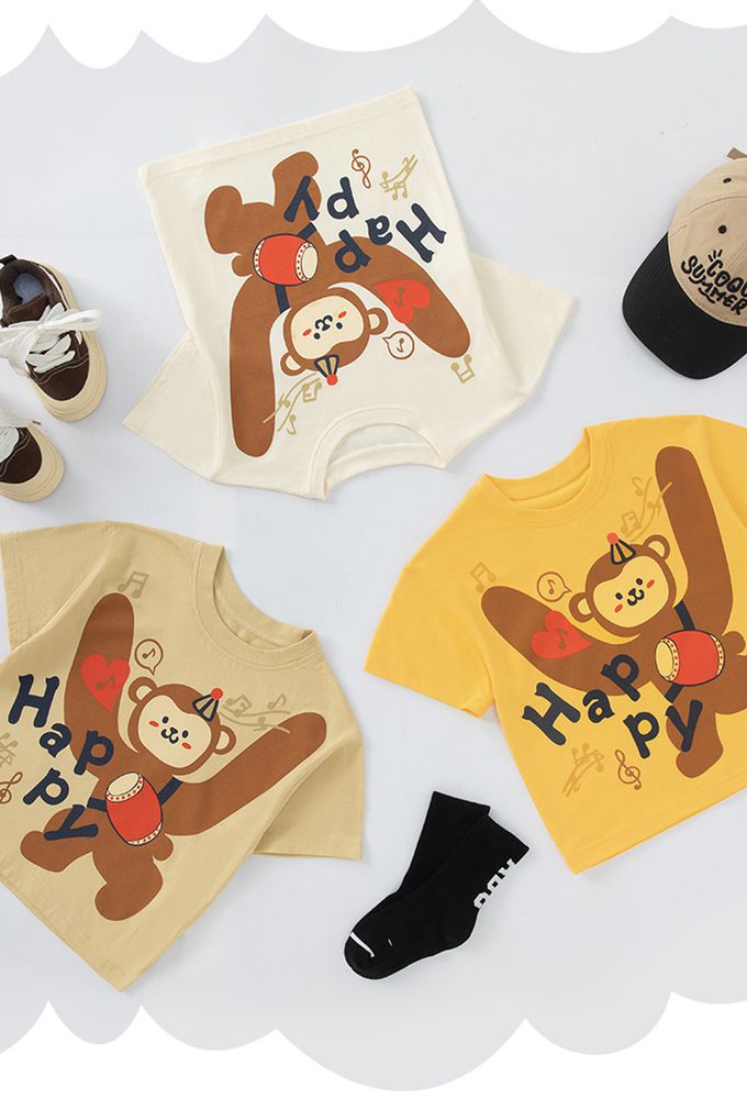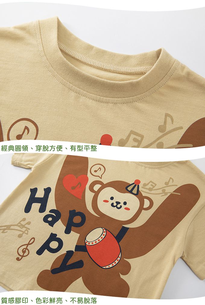 BE TOP - 純棉短袖上衣-帥氣恐龍-米黃