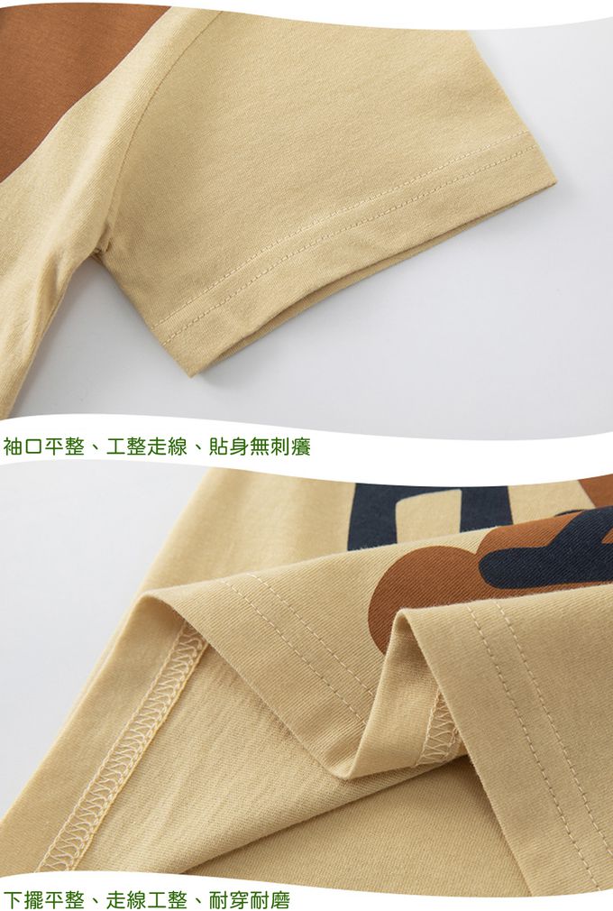 BE TOP - 純棉短袖上衣-可愛恐龍-黃藍拼袖