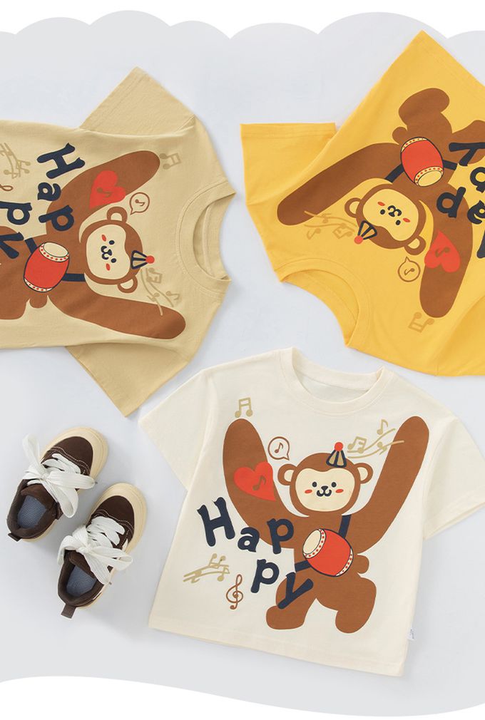 BE TOP - 純棉短袖上衣-恐龍派對-黃色