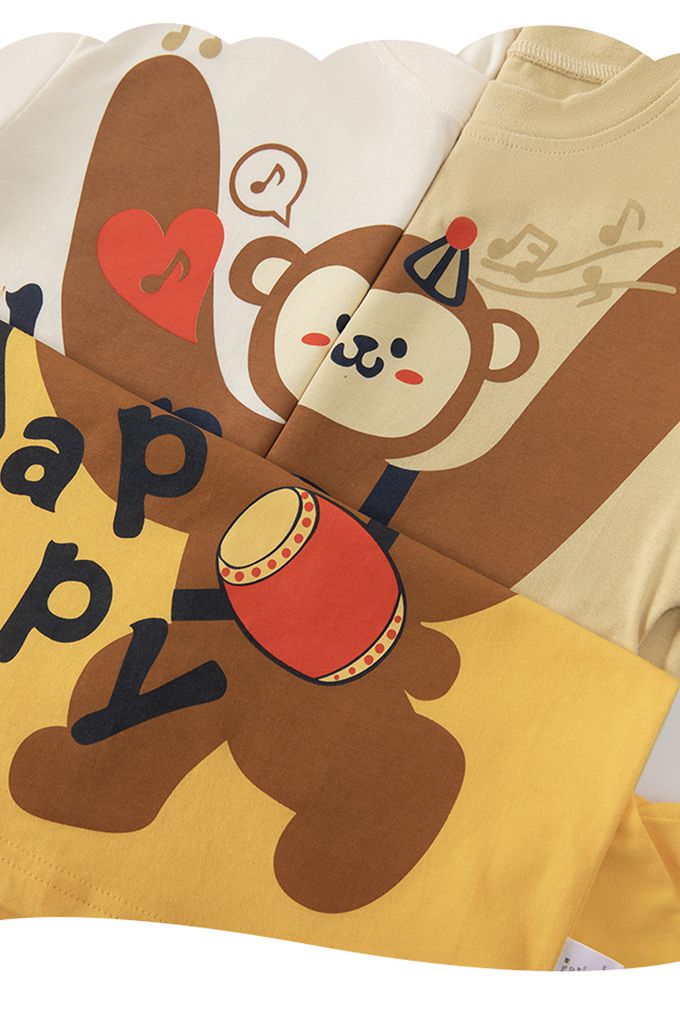 純棉短袖上衣-快樂打鼓猴-卡其杏