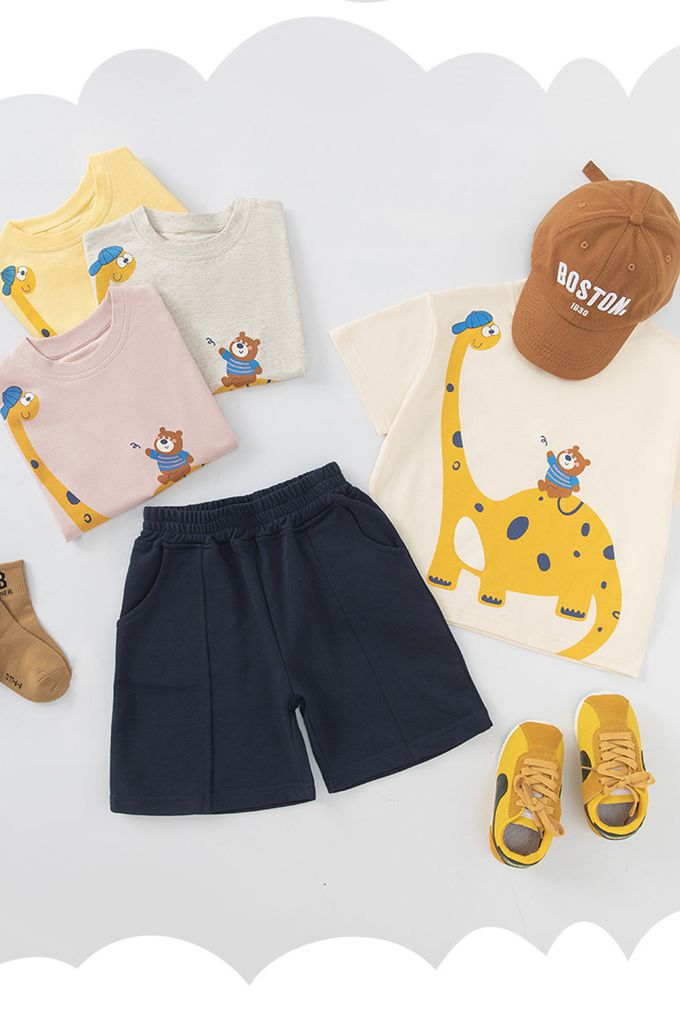 BE TOP - 純棉短袖上衣-帥氣恐龍-米黃