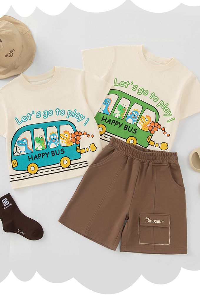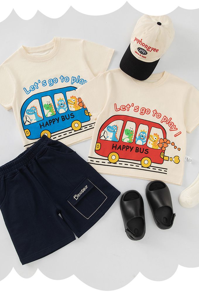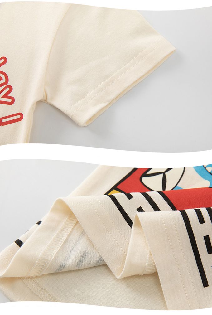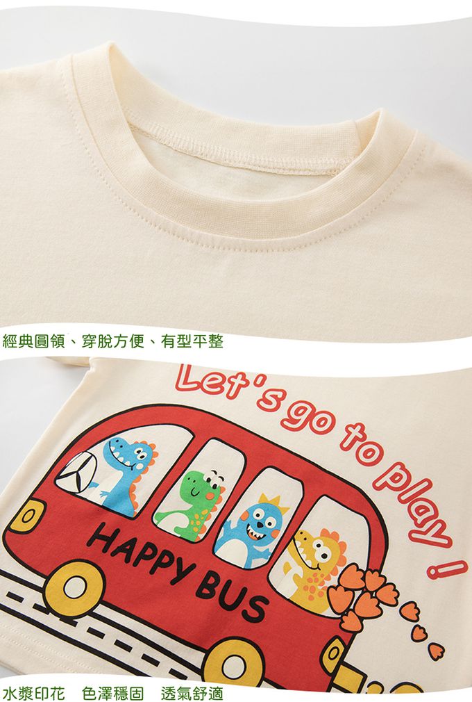 BE TOP - 純棉短袖上衣-帥氣恐龍-米黃