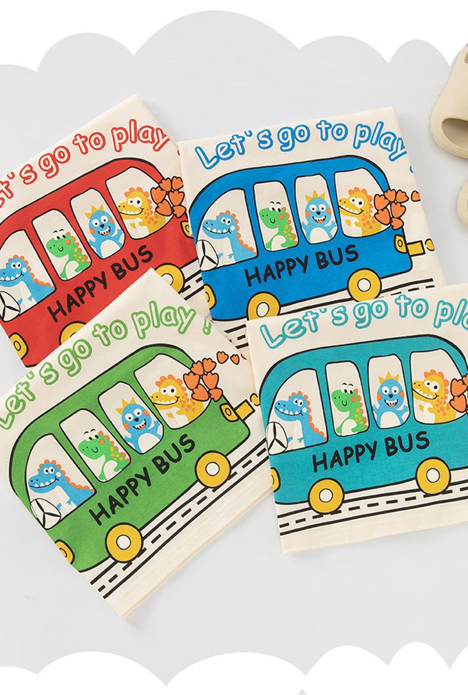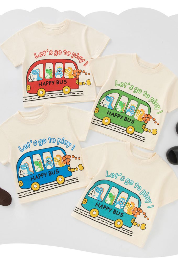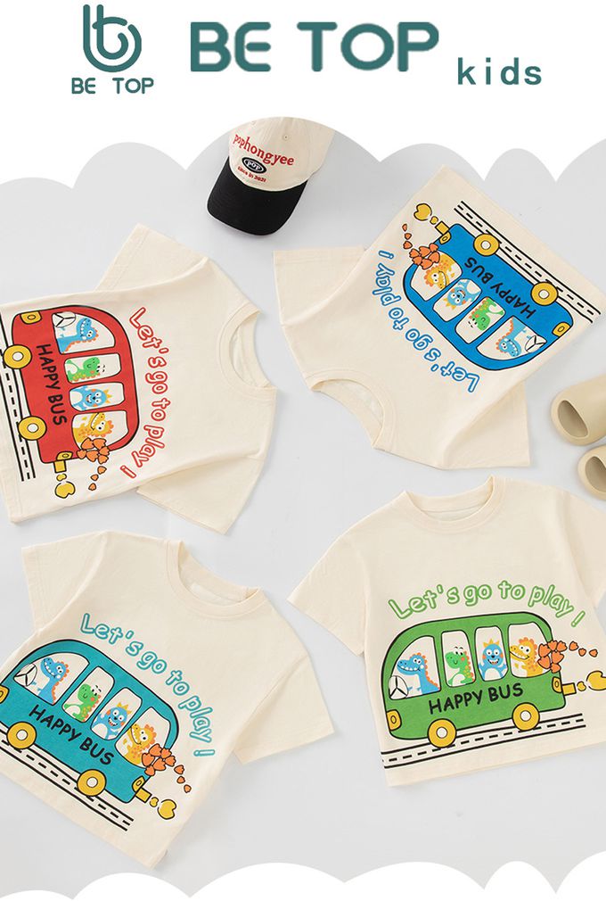 BE TOP - 純棉短袖上衣-可愛恐龍-黃藍拼袖