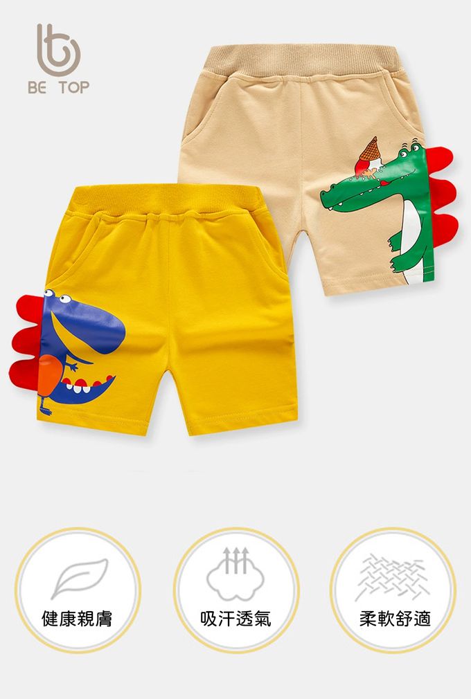 BE TOP - 純棉立體造型休閒短褲-恐龍車車-藍色