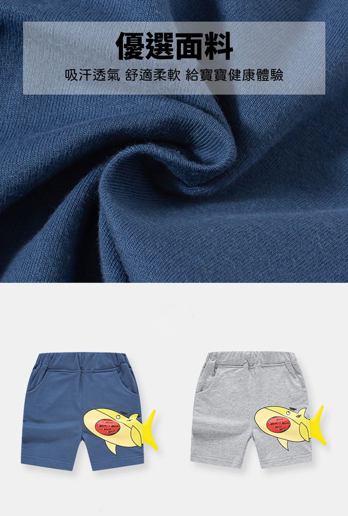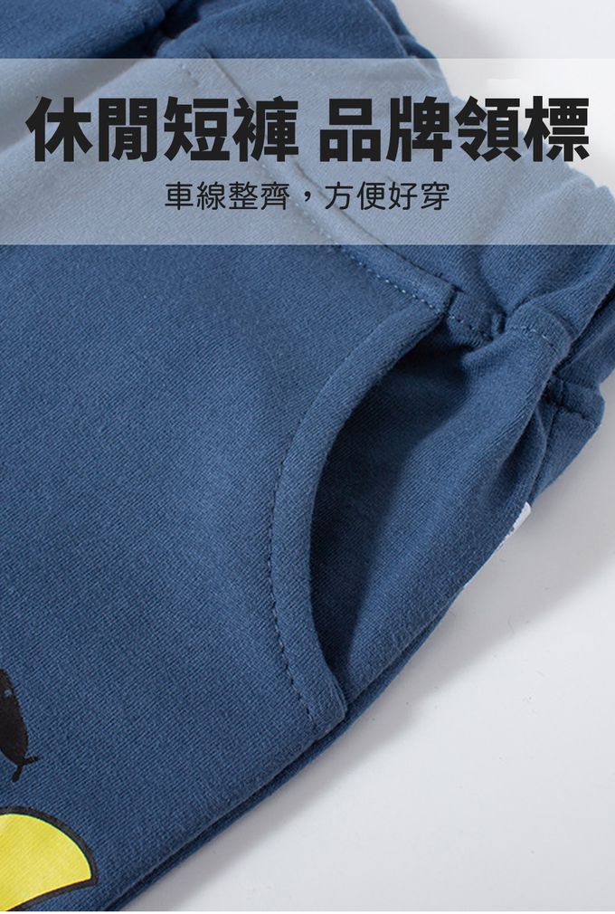 純棉立體造型休閒短褲-貪吃小黃魚-藍色